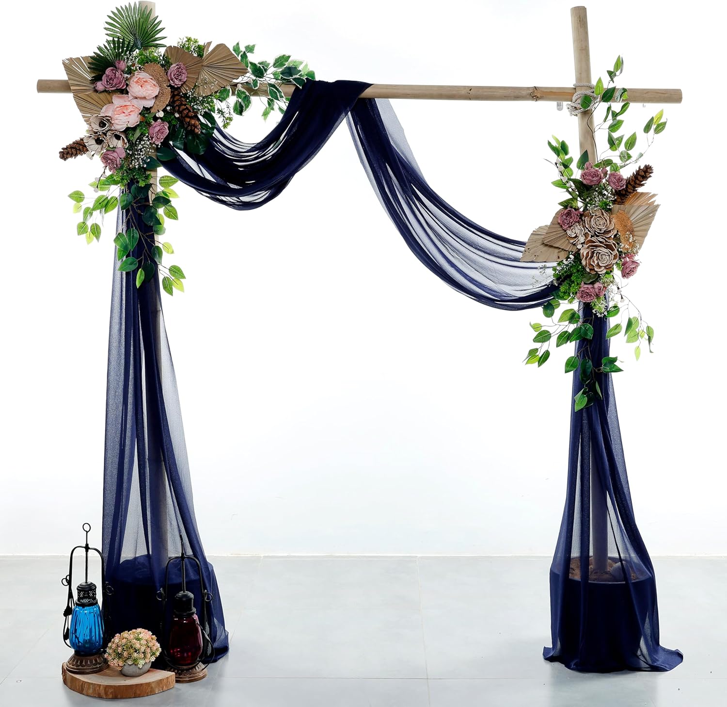 VDS Pack of 1 Panel (30 Inch X 100 Feet) Wedding Arch Draping Fabric Sheer Chiffon Fabric Drapery for Wedding Ceremony Reception Swag Backdrop Canopy Chuppah ARBO Altars Decoration (Navy Blue)
