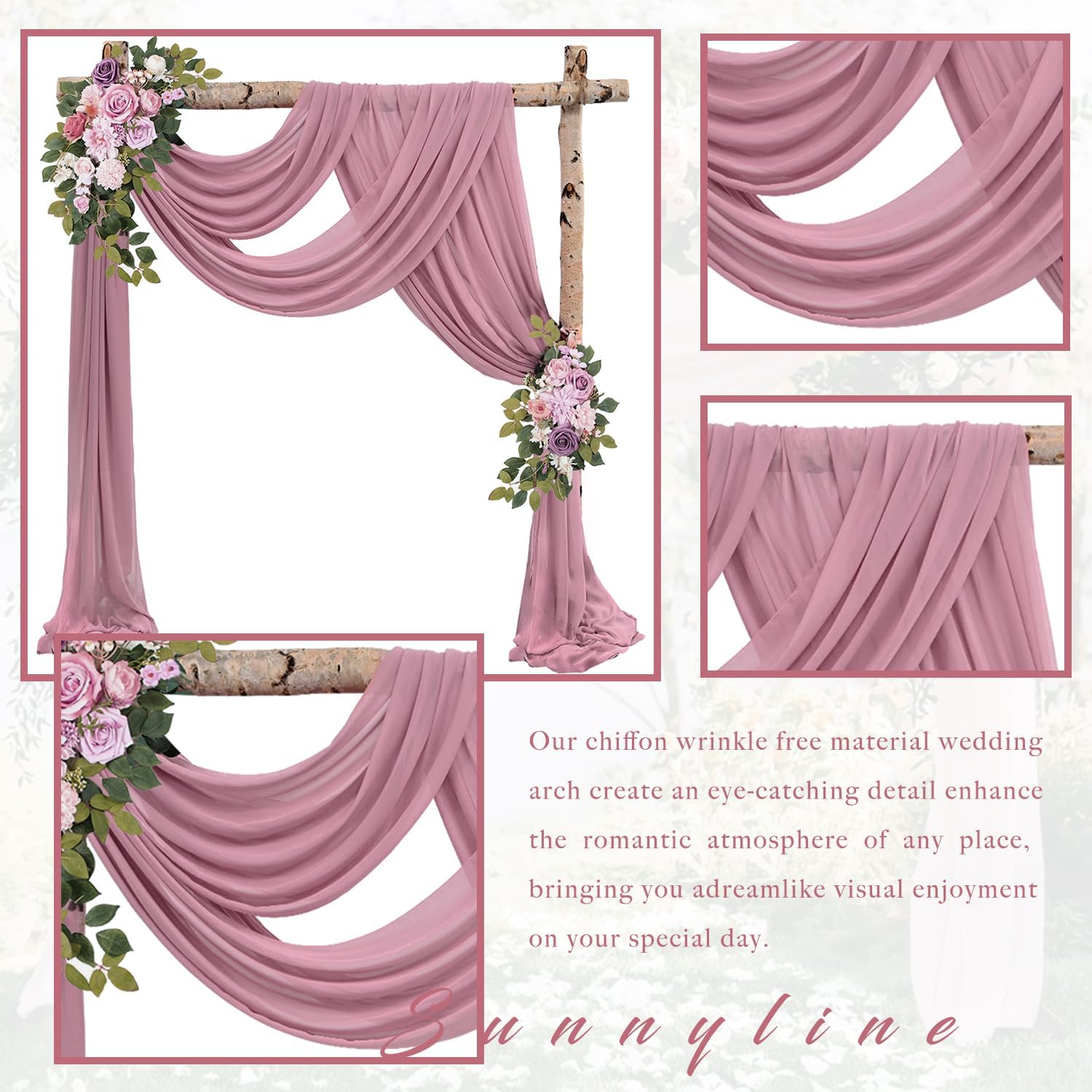 Dusty Rose Wedding Arch Draping Fabric 2 Panels 20Ft Length x 28" Width Arch Drapes Chiffon Fabric Sheer Curtains Backdrop for Party Bridal Decorations Wedding Ceremony Ceiling Stage Reception Decor