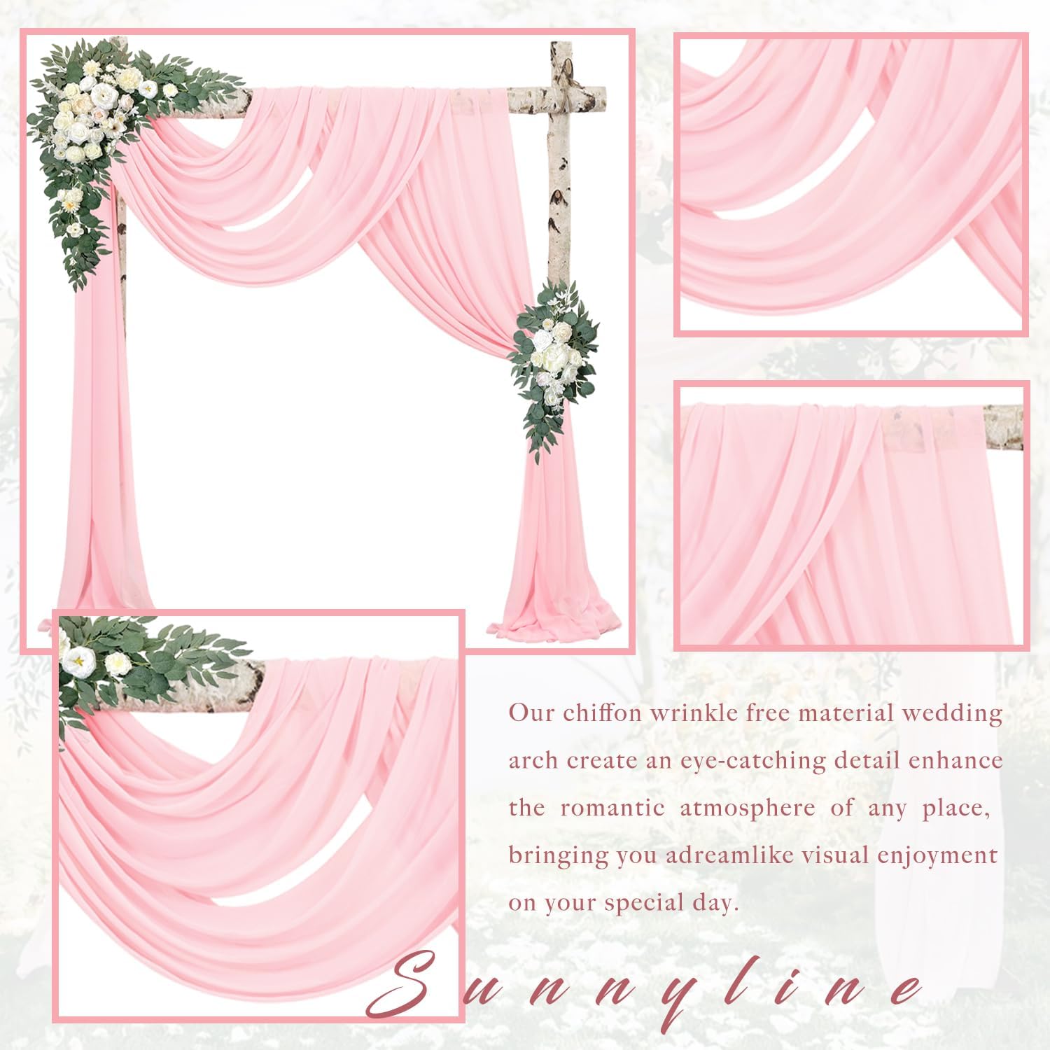 4 Panels Wedding Arch Draping Fabric 20Ft Length x 28" Width Light Pink Arch Drapes Chiffon Fabric Sheer Curtains Backdrop for Party Bridal Decor Wedding Ceremony Ceiling Stage Reception Decorations
