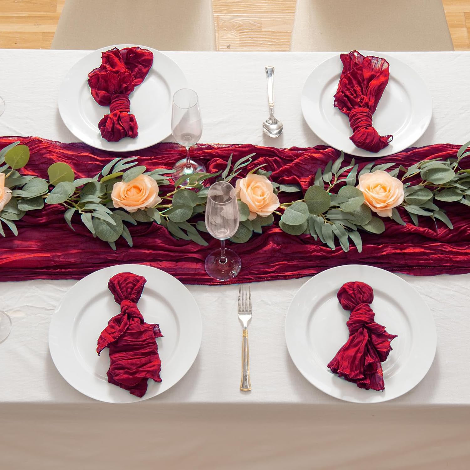 - 【Package Include】: you will get 8 pieces 35 x 120 inches/90 x 300 cm length burgundy cheesecloth table runner, which is large enough to cover and dressed up rectangle and round tables, can also be spliced together for long tables. Even can be used for chair cover sashes or decorative napkins, backdrop draping, ceiling draping or even gift wrapping.