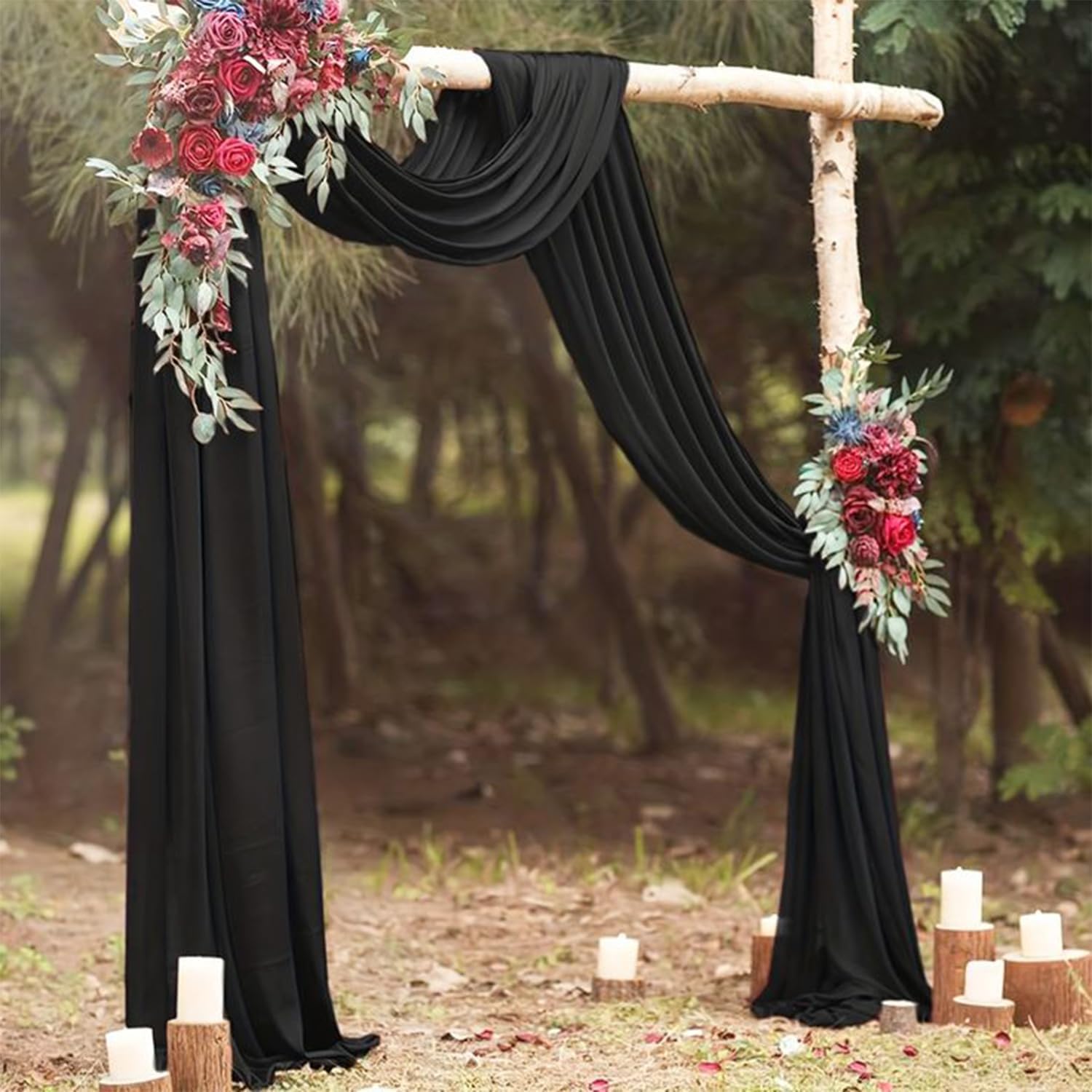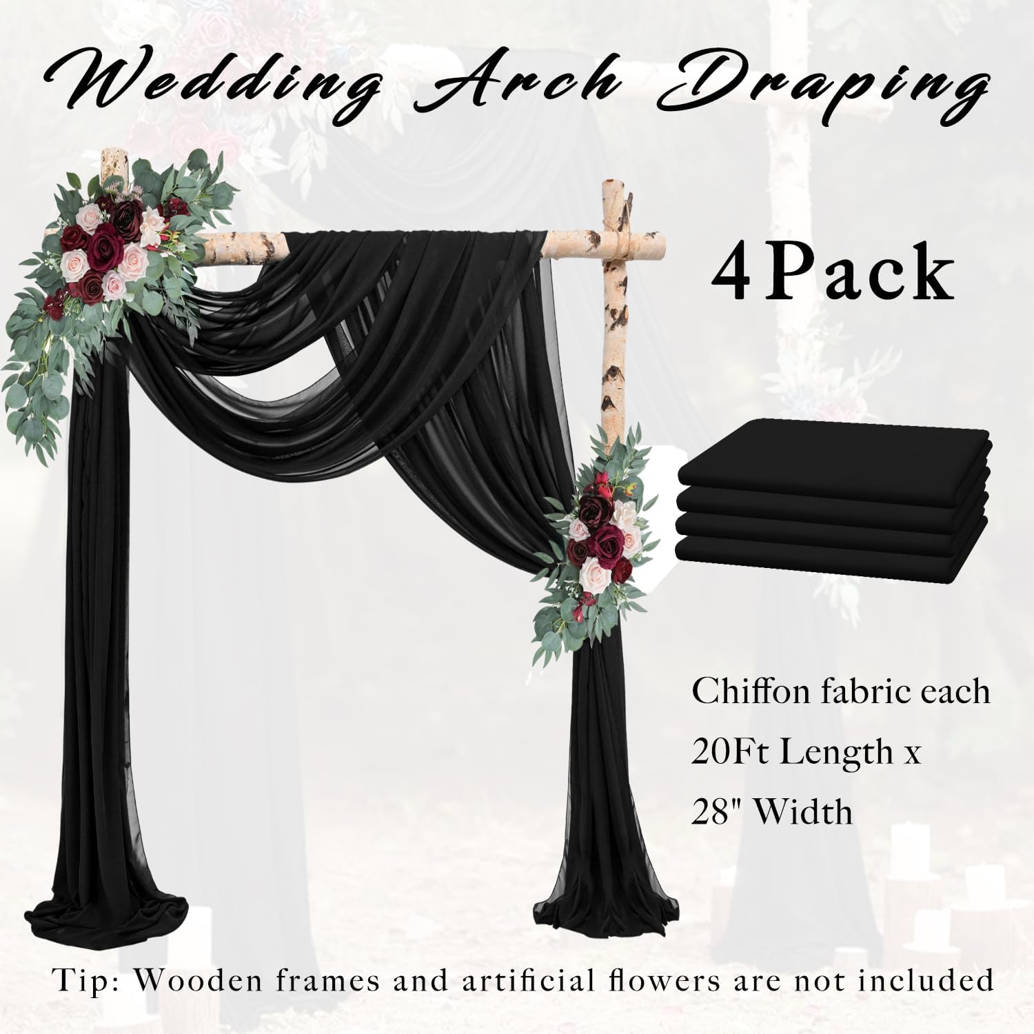 20Ft Length x 28" Width 4 Panels Wedding Arch Draping Fabric Black Arch Drapes Chiffon Fabric Sheer Curtains Backdrop for Party Decor Wedding Bridal Ceremony Ceiling Stage Reception Decorations