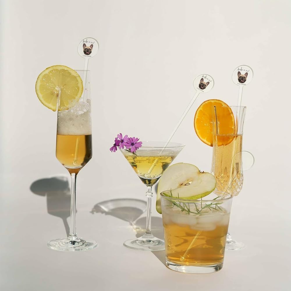 Coolslove Personalized Wedding Dog Stir Sticks, Custom Illustrated Pet Acrylic Cocktail Stirrers, Acrylic Cocktail Stirrers, Wedding Drink Sticks, Wedding Favors Decors Essentials Style 3