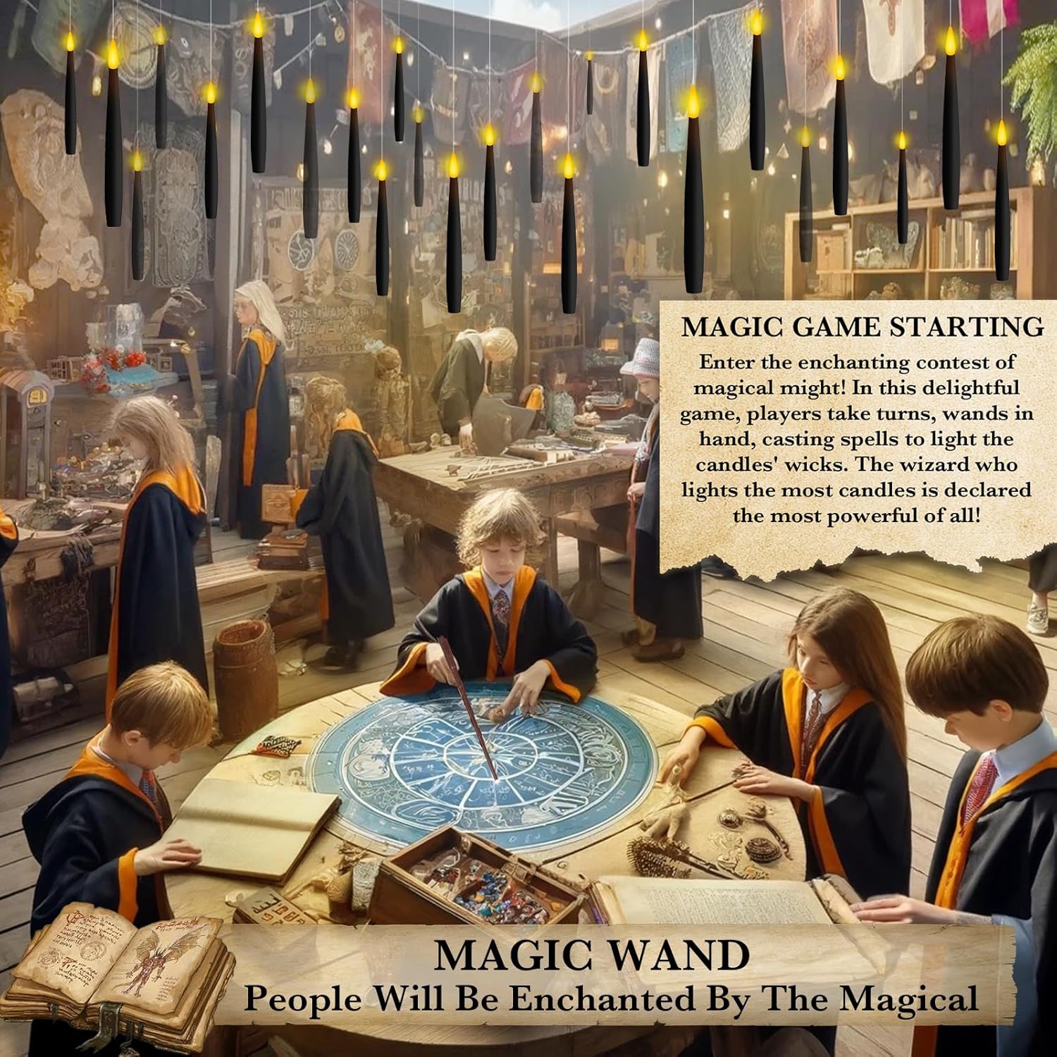 - START YOUR WAND SKILL CAMP: Our creative wands offer a unique way to practice magical abilities with floating candles. By keeping practice your wand skills, you can light up additional candles. Decorated in your movie classroom,this provides a enchanting space for children to stimulate imagination and compete who to become the most powerful wizard. Tips, holding down the wand button lets you slow down spell for better illuminating more candles.Celebrating your graduation from magic school