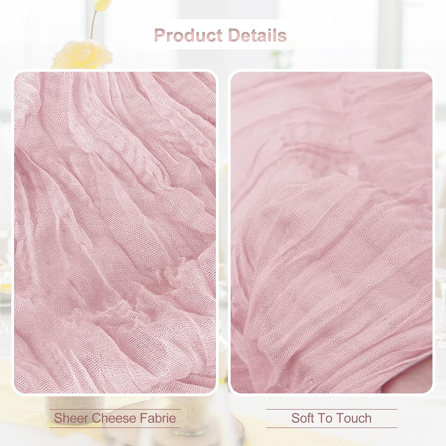 - User-Friendly: We understand the importance of convenience for our customers. Our dusty pink rustic sheer table runner is easy to clean and maintain. They can be machine washed or hand washed without losing their shape or color. The lightweight and flexible nature of the cheesecloth and gauze make them easy to handle and store, saving you space and effort.