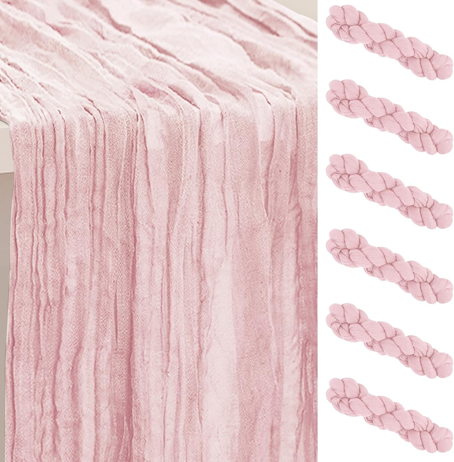 - Premium Materials: Our table runners are crafted from high-quality cheesecloth and gauze. The dusty pink cheesecloth table runner has good softness and breathability, while the gauze table runner offers a delicate and elegant texture. These materials are carefully selected to ensure durability and a luxurious feel, making your table look and feel extraordinary.