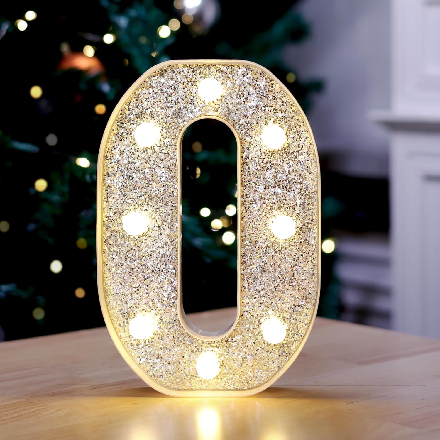 Marquee Light Up Letters, Glitter Silver LED Letter Lights Battery Powered Alphabet Letter Sign for Night Light Wedding Birthday Party Cafe Bar Decoration Girls Room Decor - O