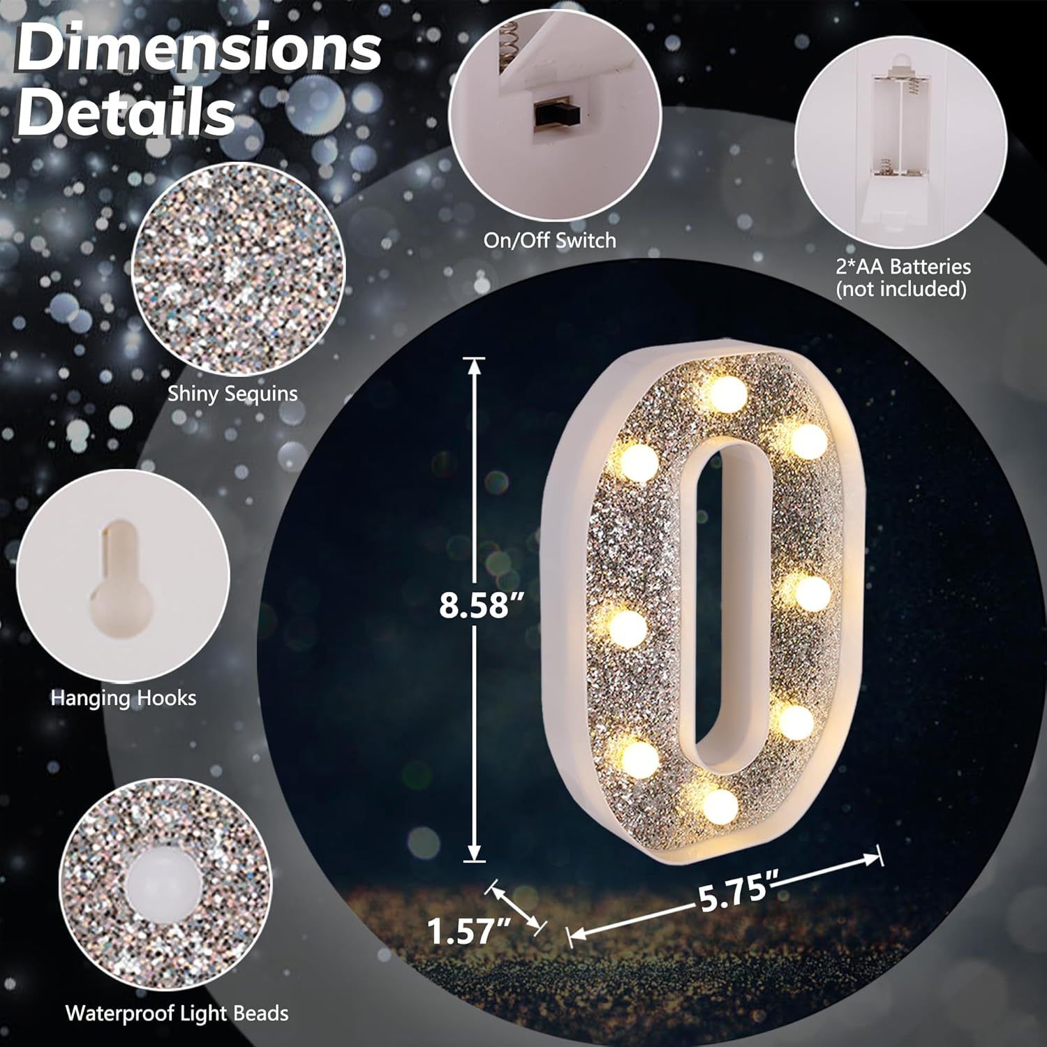 - 【Glitter Silver Marquee LED Letters】Unlike normal white lighted letters, these LED letter lights are covered with shiny silver glittering sequins. Whether it is turned on or off, these glitter marquee lights give a bright eye-catching glow. You can use it to beautify your dining table and light up your party. Create a dreamlike and romantic atmosphere.