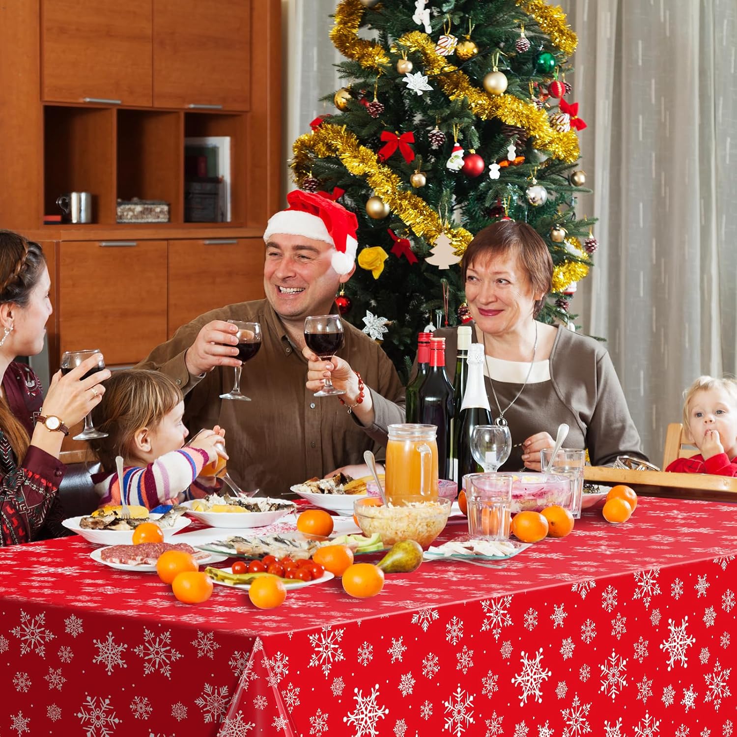 - Extra large size:these red snowflake Christmas party tablecloth measures approx. 137x274cm/54X108 inch, which fits for 8 feet long tables that can accommodate 8-10 people, It’s large enough for your to hold a winter holiday and Christmas theme party with your family and friends to share happiness