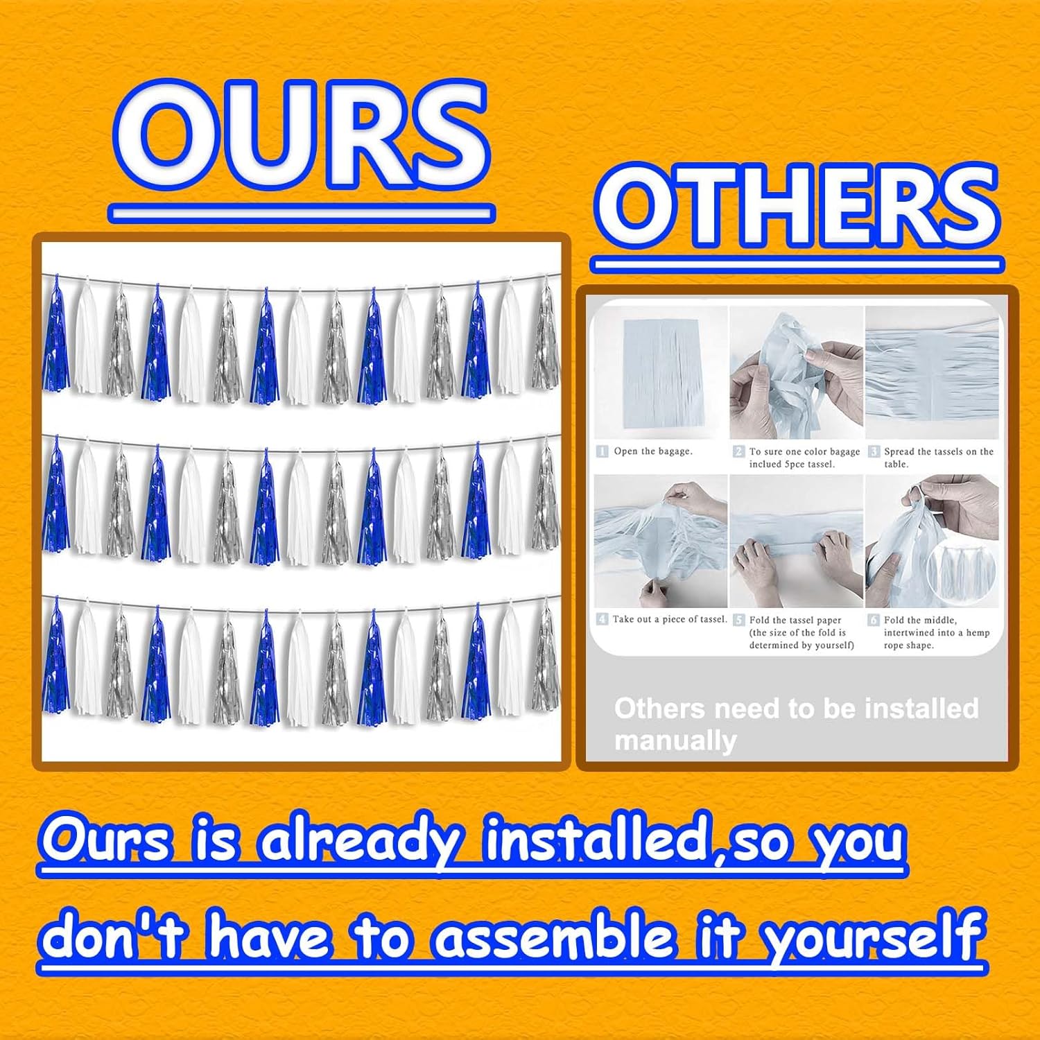 - 【Package Includes】The total length of the navy blue white silver birthday tassels banner is 30 feet, divided into 3 strips, each 10 feet long. Each banner contains 15 tassels, and each tassel measures 14 inches, for birthday decorations many occasions uitable for Patriotic display, Homecoming Float, Christmas Float, ecorative metal trailers, graduation floats etc