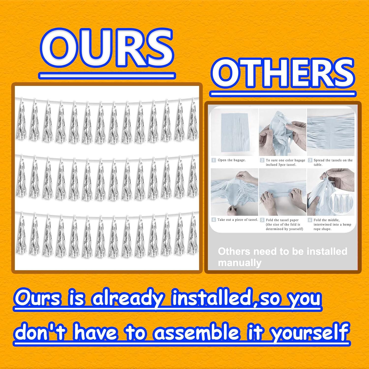 - 【Premium Reusable Tassel Material】: Our glitter fringe garland is made of high-quality PET material, with the virtue of nice craftsmanship and light weight which is safe and recyclable. And the smooth touch makes tassels easy to tidy up. They come with white ribbon for hanging, and garland tassels hang perpendicular to the string, and are adjustable to provide you with the option of spreading the tassels out or piecing them closer together.