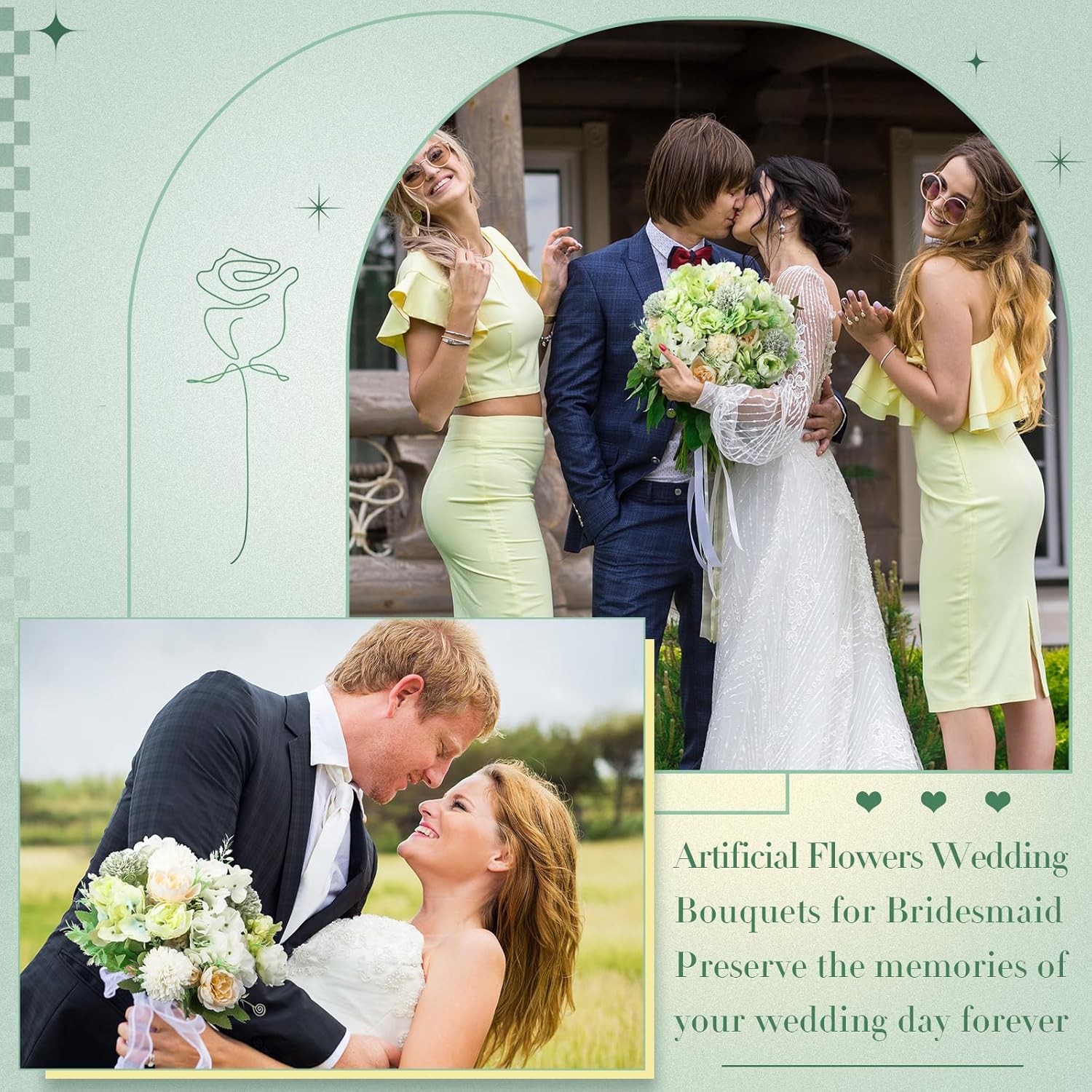 Tigeen Artificial Flowers Artificial Peonies Silk Flowers Faux Peony Fake Peony Silk Hydrangea Bouquet for Wedding Table Centerpiece Floral Vase Decor (White,Green,12 Bundles)