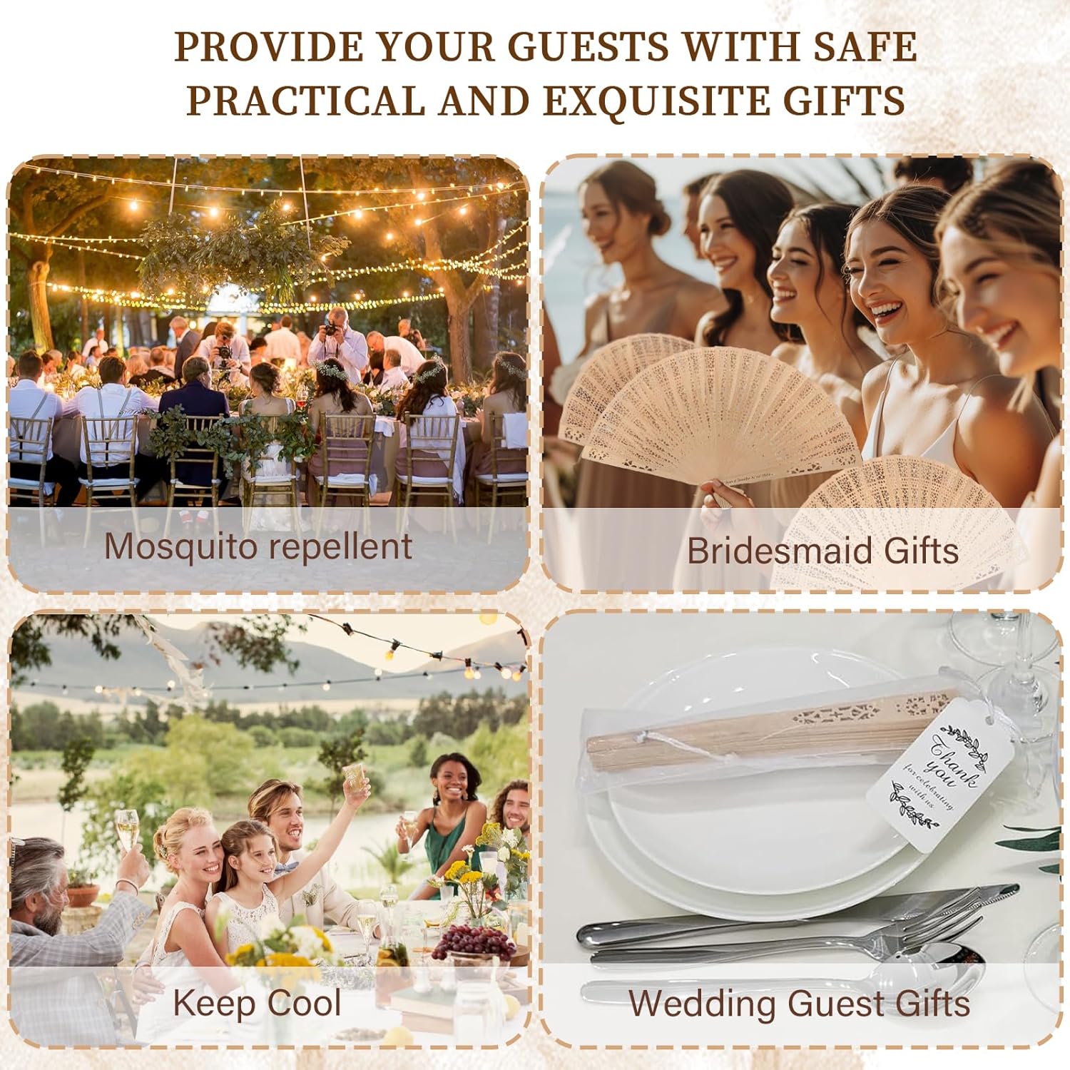 - ELEGANT PERSONALIZED WEDDING FANS: Crafted from natural sandalwood with a light, pleasant scent, these fans can be custom printed with names, logos, or messages — perfect for adding a special touch to your big day