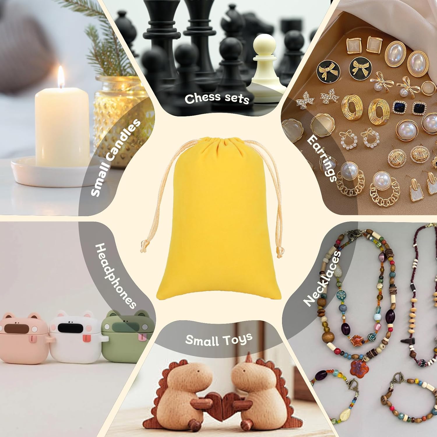 Velvet Drawstring Jewelry Bag, 50Pcs Yellow Coin Pouch, 4x6 Dice Bag, For Wrapping Halloween Party Favors, Small Jewelry, Small Bussiness, Palm Crosses, Pendents, Bracelet