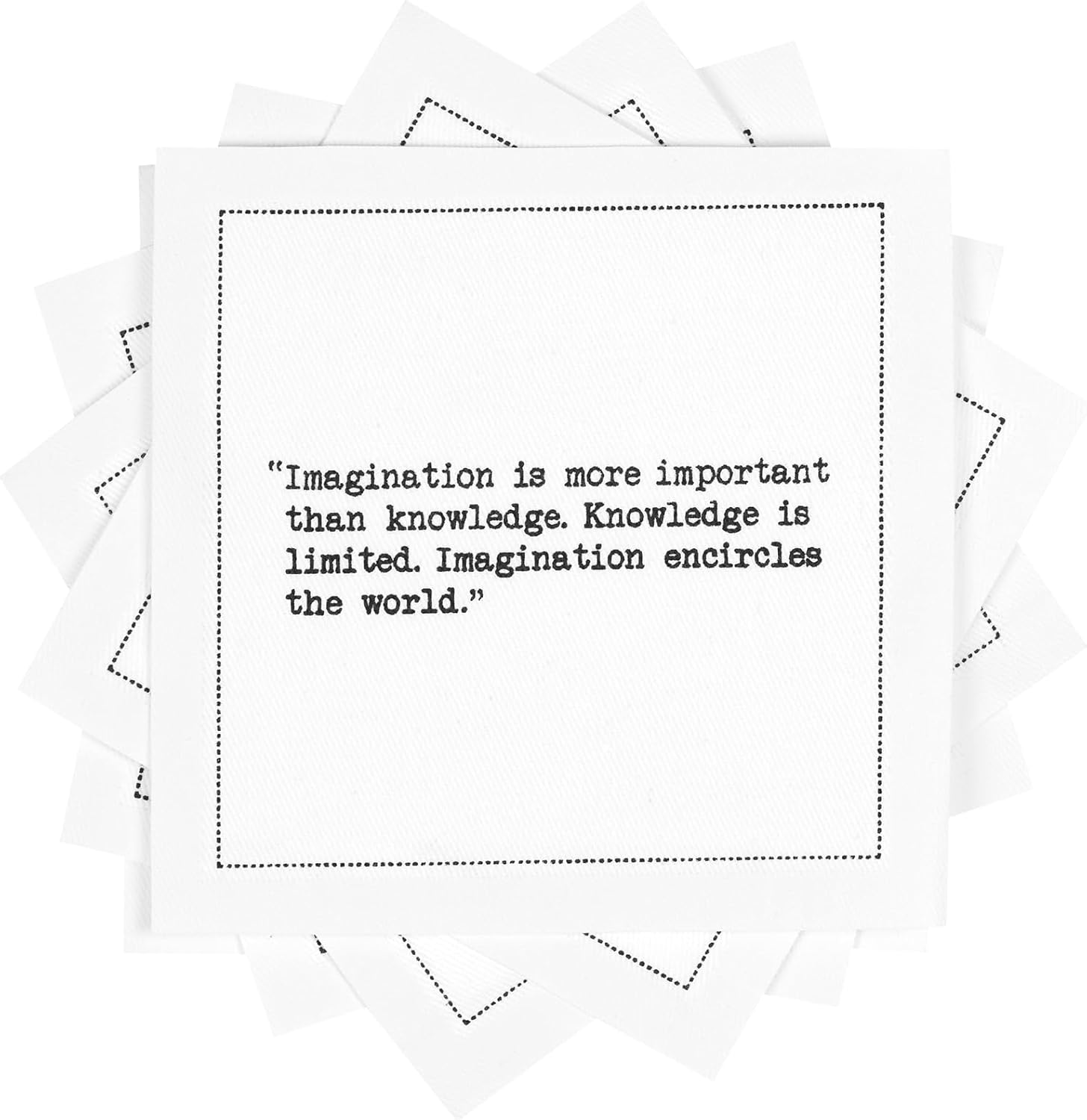 FIVE STAR NAPKINS Einstein Quote Napkins, White Cotton Cocktail Napkins, 50 Count, 4.5" x 4.5" - Disposable, Biodegradable & Recyclable