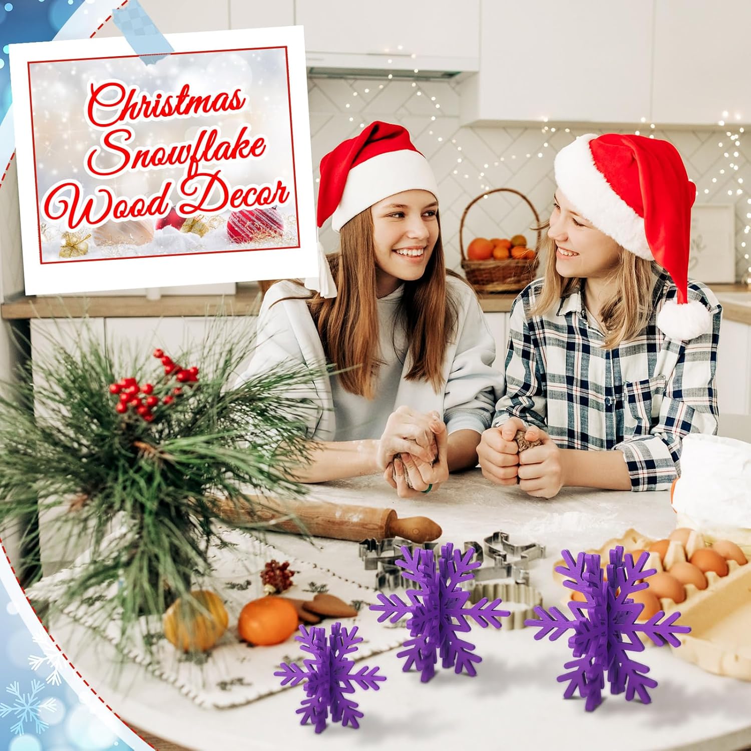 Bucherry 12 Pcs Wooden Snowflake Table Decor 3D Snowflake Tabletop Signs and Centerpiece for Christmas Xmas Winter Wonderland Decorations Home Party(Purple)