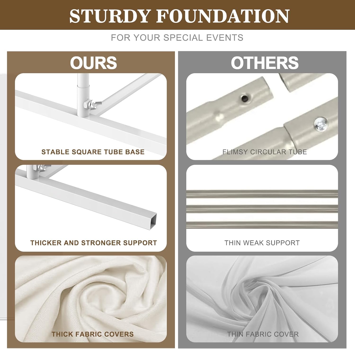 - Arch Backdrop Stand Set-Our Metal wedding arch backdrop stand set includes a 7.3x4 ft,6×2.6ft metal arch backdrop stand, and the same size arch backdrop cover, the metal arch frame is in an elegant door shape, providing excellent background decoration for your event