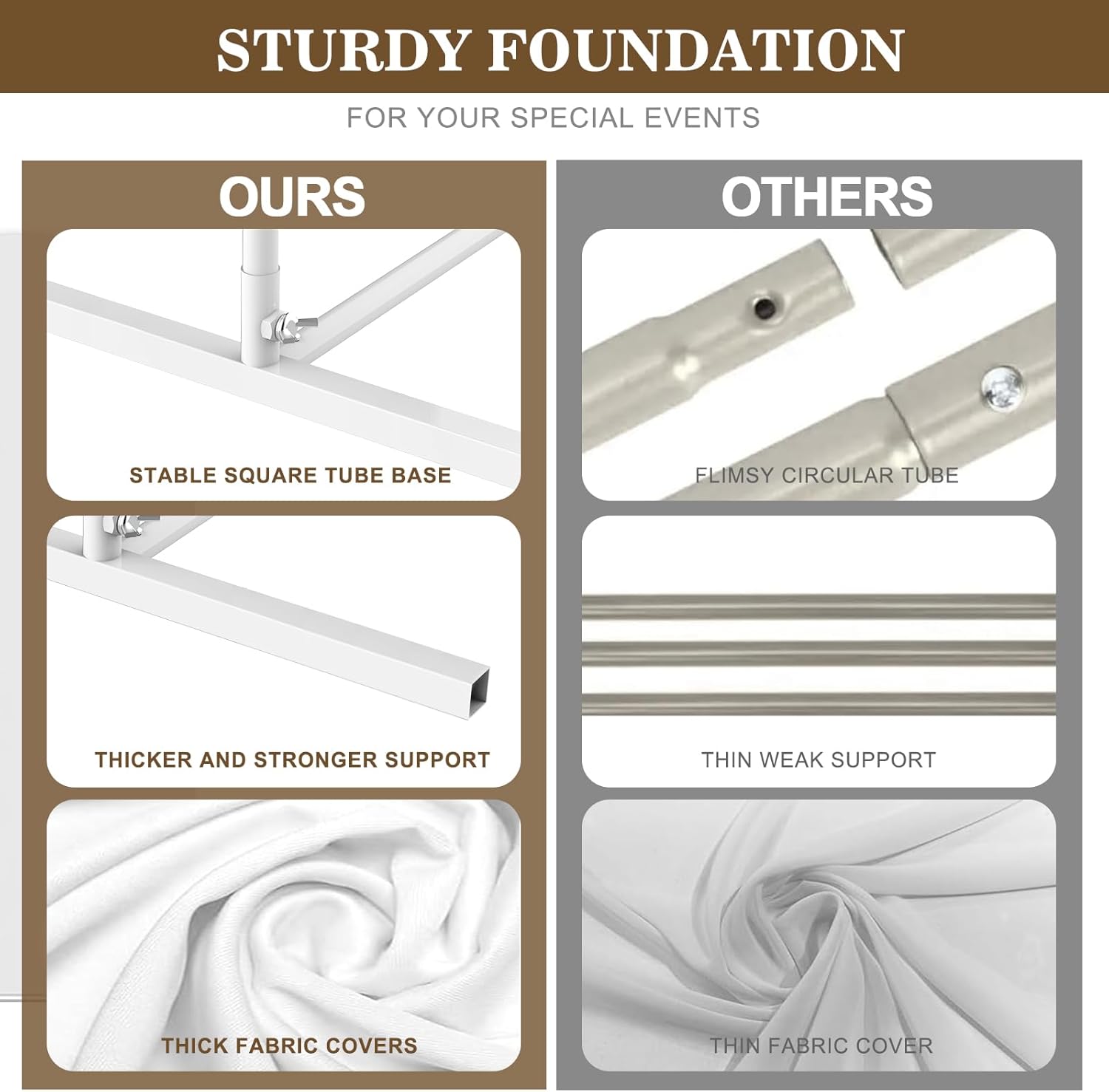 - High Quality-The arch backdrop stand is made of high-quality metal material, durable and rust-proof, each base is equipped with 2 T-shaped tubes to increase the overall strength and stability, not easy to twist, and can be used indoors and outdoors. The double-sided arch cover is made of high-elastic spandex, which is smooth to the touch and wrinkle-resistant