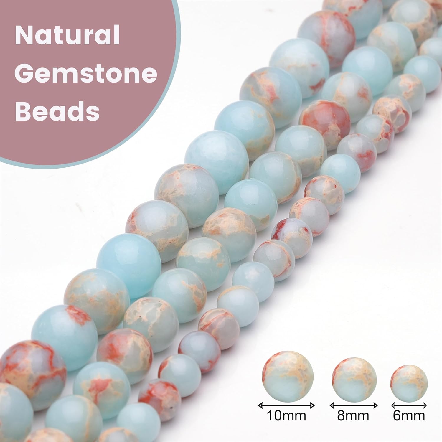 10mm Natural Stone Beads for Jewelry Making,Sky Blue Jasper Polished Smooth Round Gemstone Beads for Bracelet Necklace 15 Inch