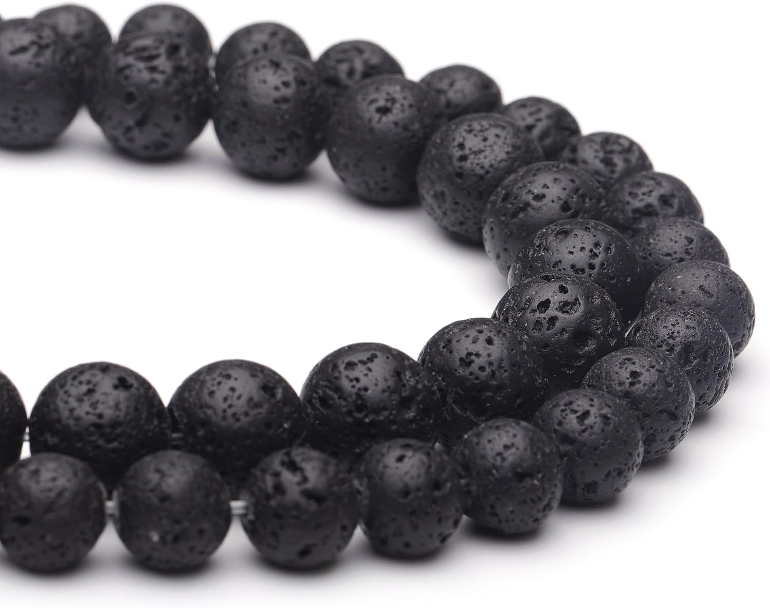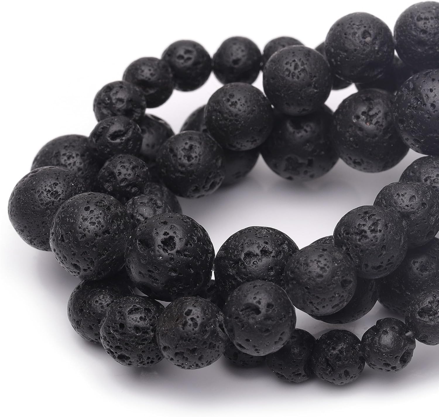 6mm Natural Stone Beads for Jewelry Making,Black Lava Polished Smooth Round Gemstone Beads for Bracelet Necklace 15 Inch