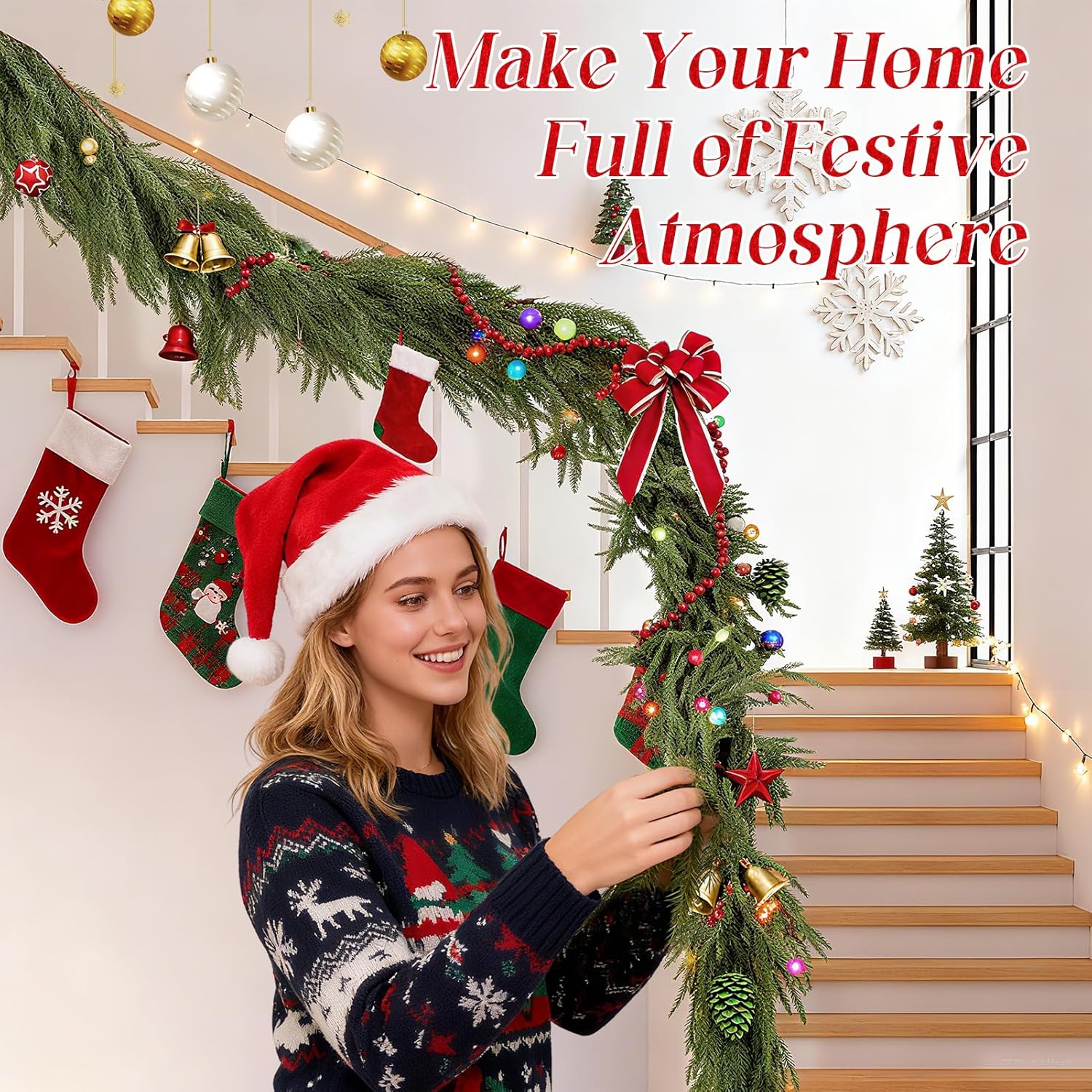 - GENEROUS LENGTH: Measuring 9 ft long, this Christmas garland provides ample length to cover large areas, whether draped over a mantle, around a porch, or used as a centerpiece on your dining table. Its flexible design allows you to easily adjust and arrange it to create your nice holiday scene.