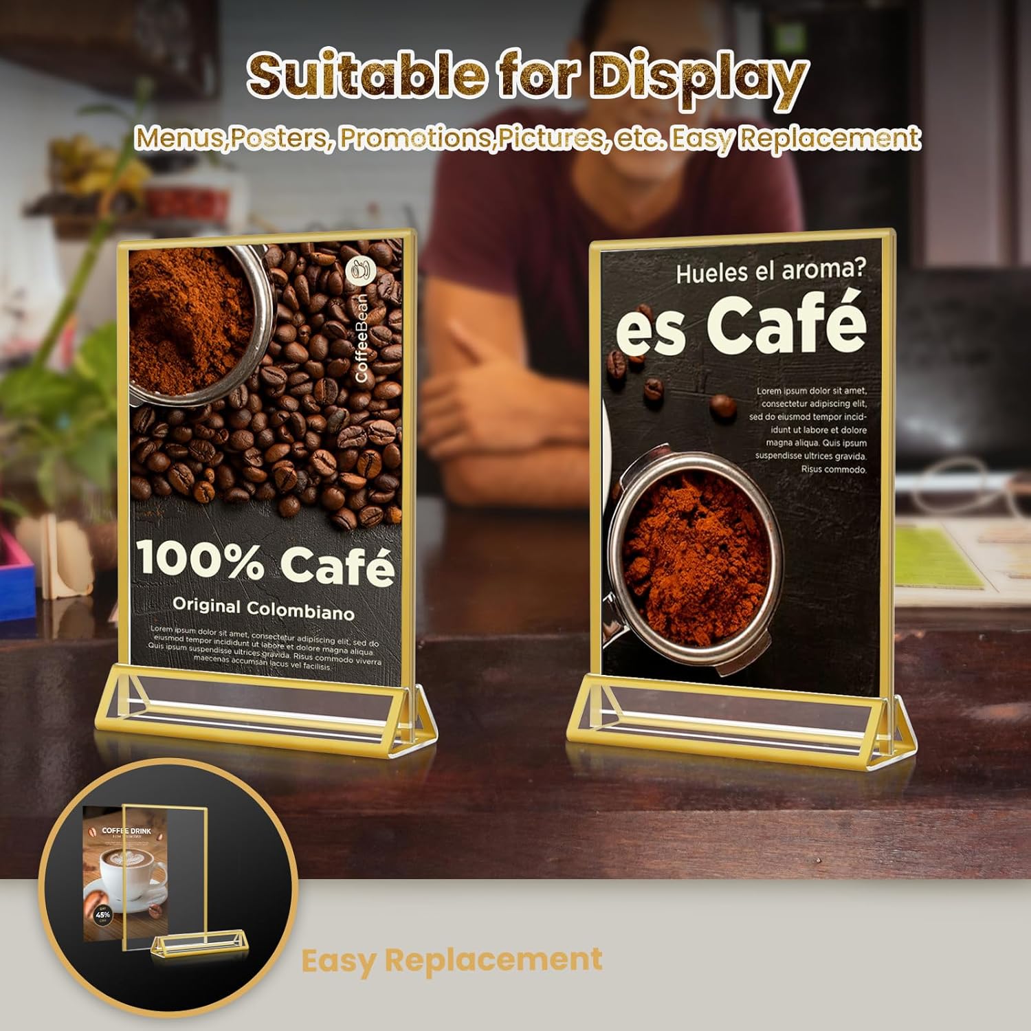 - 【EASY TO ASSEMBLE】These gold picture frames are incredibly easy to install. Simply open the double-sided display frame, place your sign inside, and insert the holder into the base. Plus, the detachable design makes them convenient to store and transport, too.