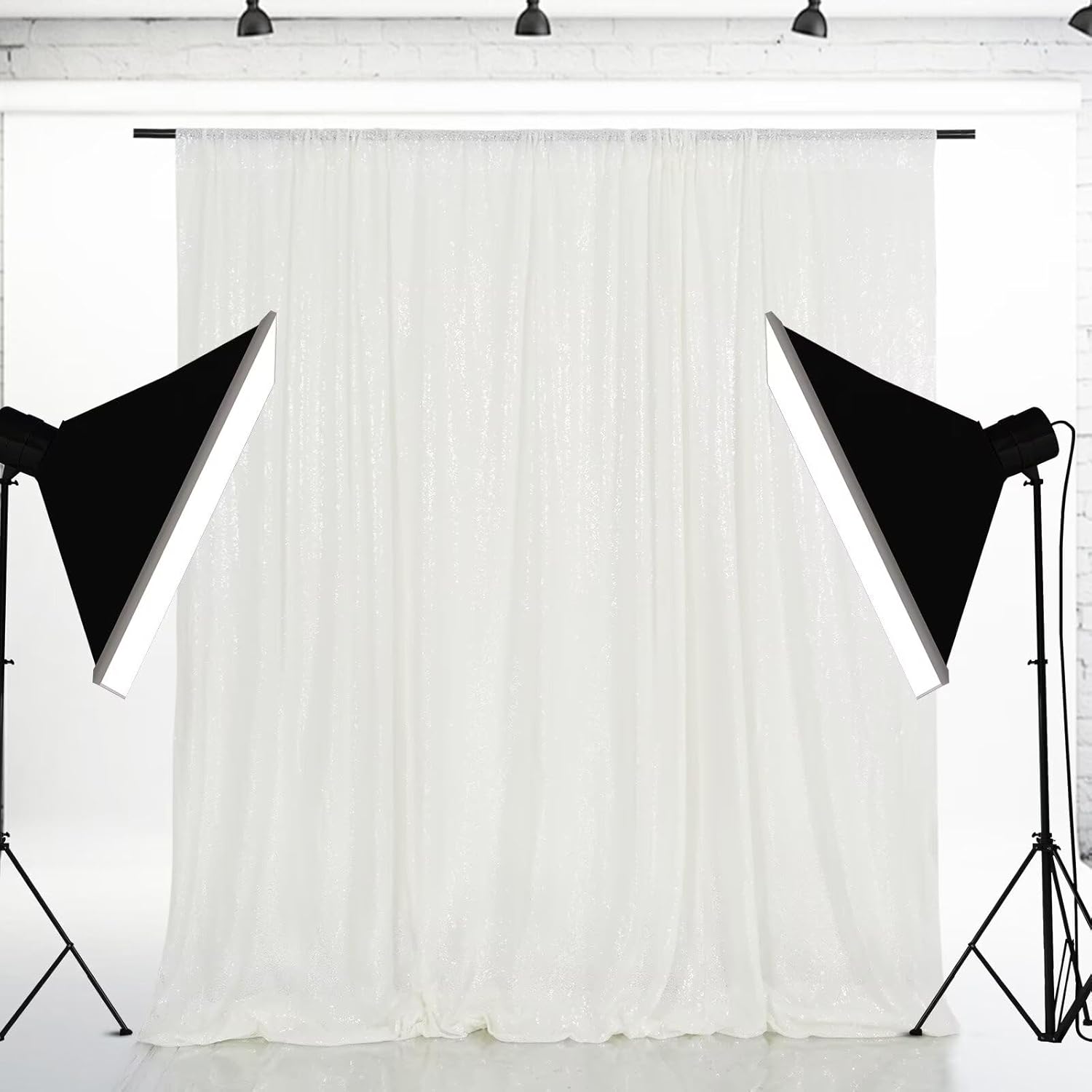 Eternal Beauty White Sequin Backdrop, 8x10 Ft Glitter Background Curtains for Christmas Shimmer Photography Party Wedding Birthday Back Drop Decor