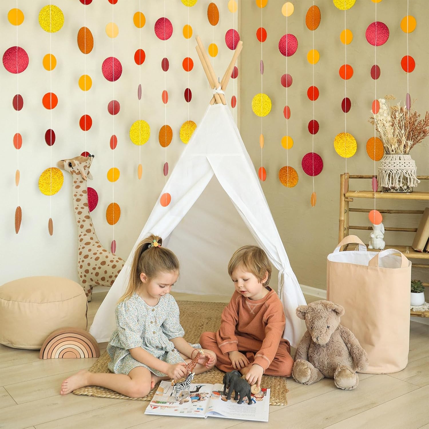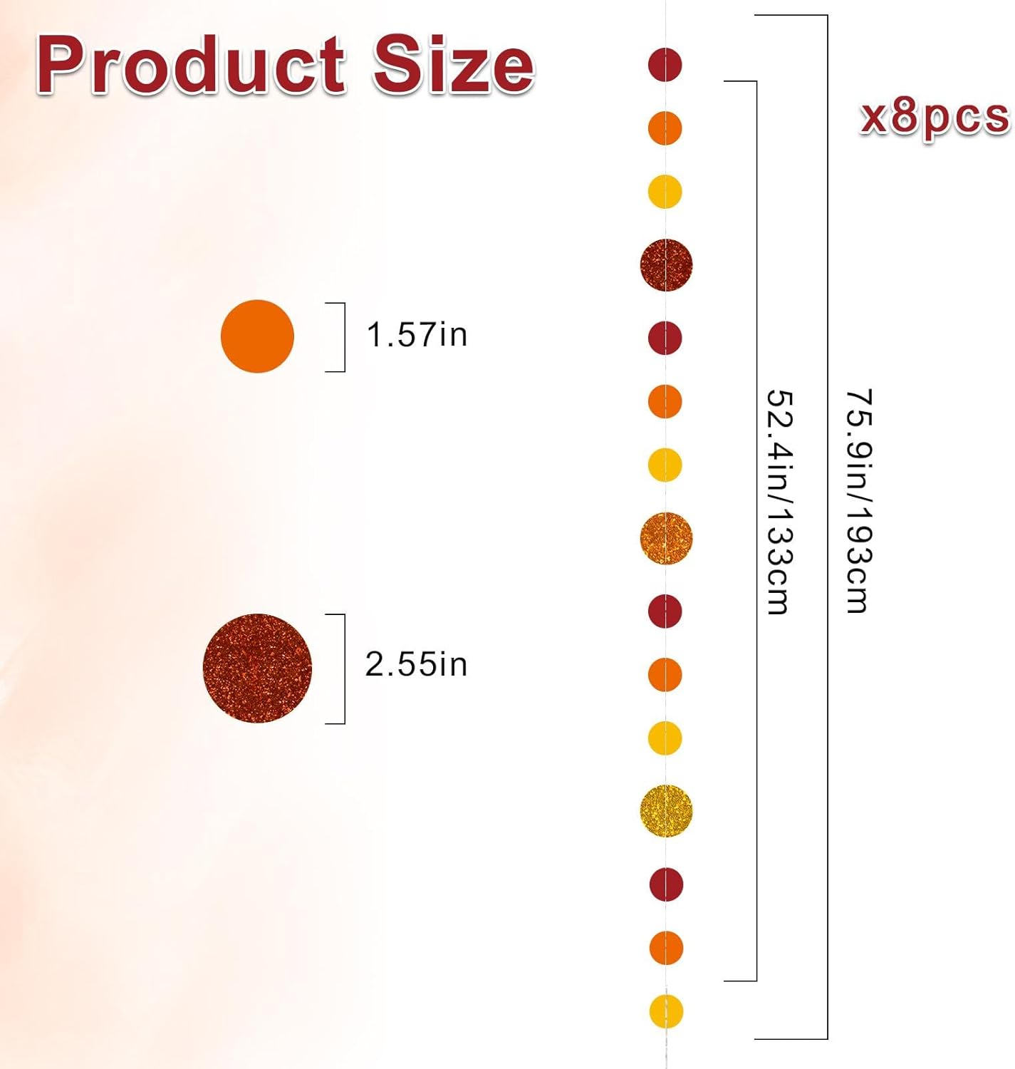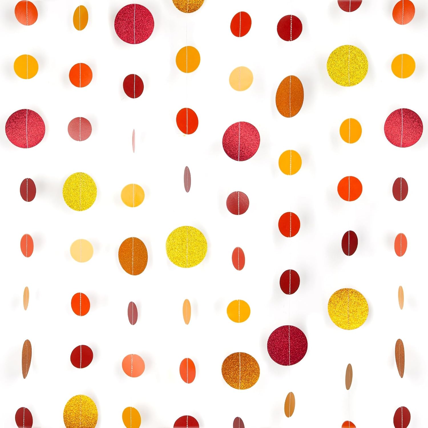 - 【Warm & Festive Fall Decor】 Capture the cozy essence of autumn and festive holidays with our Orange-Red Glitter Dot Garland. Ideal for Halloween parties, Thanksgiving gatherings, autumn weddings, baby Showers and seasonal decorations, this garland enhances your space with rich, warm tones.