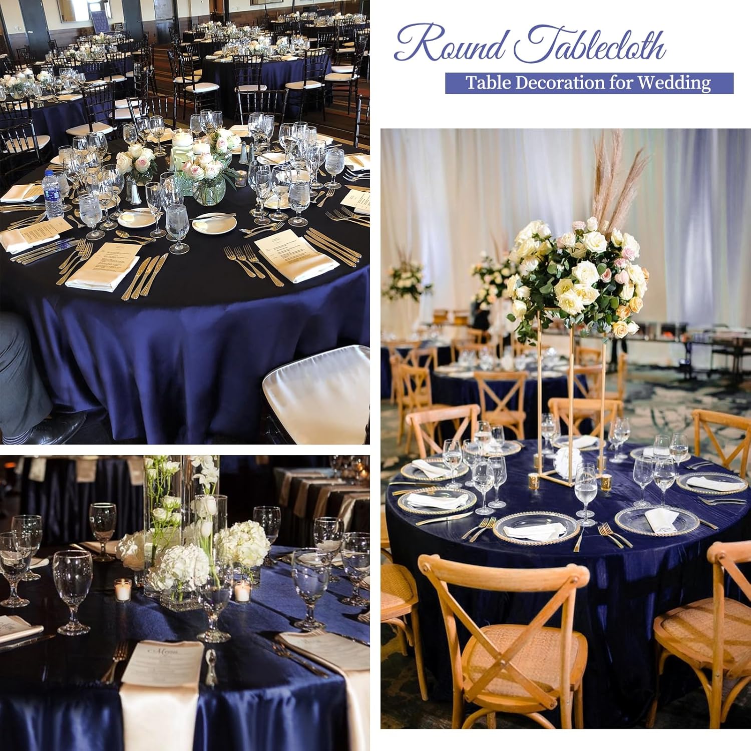 - 【Round Satin Tablecloths】6 Pieces premium navy blue satin round tablecloth. The size of silk satin table cover is 120 inches, large enough to decorate a table that can accommodate 8-10 persons. It is suitable for most household round tables and can meet your different needs. Sufficient quantities are sufficient for party events to enhance the charm of your event decoration. The tablecloth size is usually larger than your table size. Please measure your table size before buying.