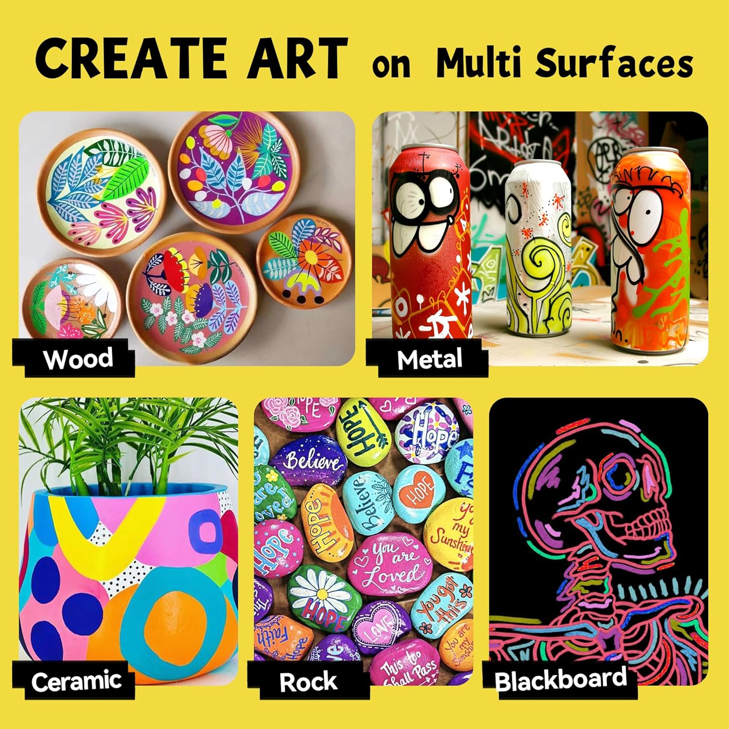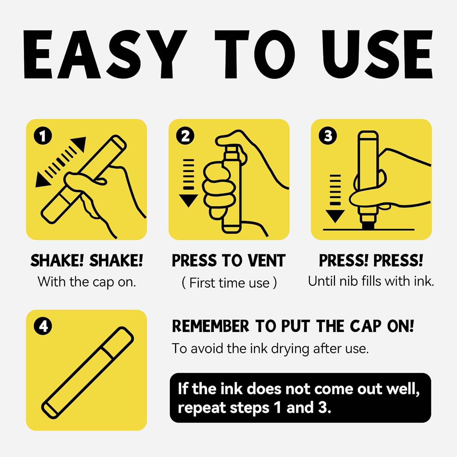 - Non-Toxic and Safe – SRUOLOC paint markers are non-toxic, Each thick permanent marker meets ASTM d-4236 and EN-71 safety standards, are suitable for artists of all ages, working seamlessly on rock, fabric, glass, wood, plastic, paper, and more