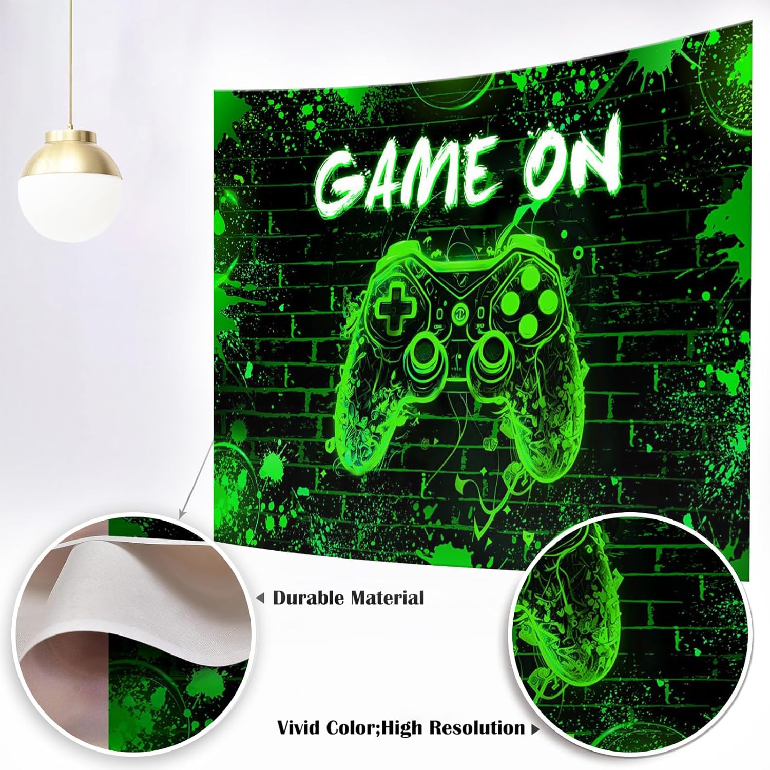Mocsicka Game On Backdrop Video Game for Boys Level Up Birthday Party Decoration Game Night Arcade Neon Glow Gamer Banner Photography Background (Green, 10x8ft(120"x96"))
