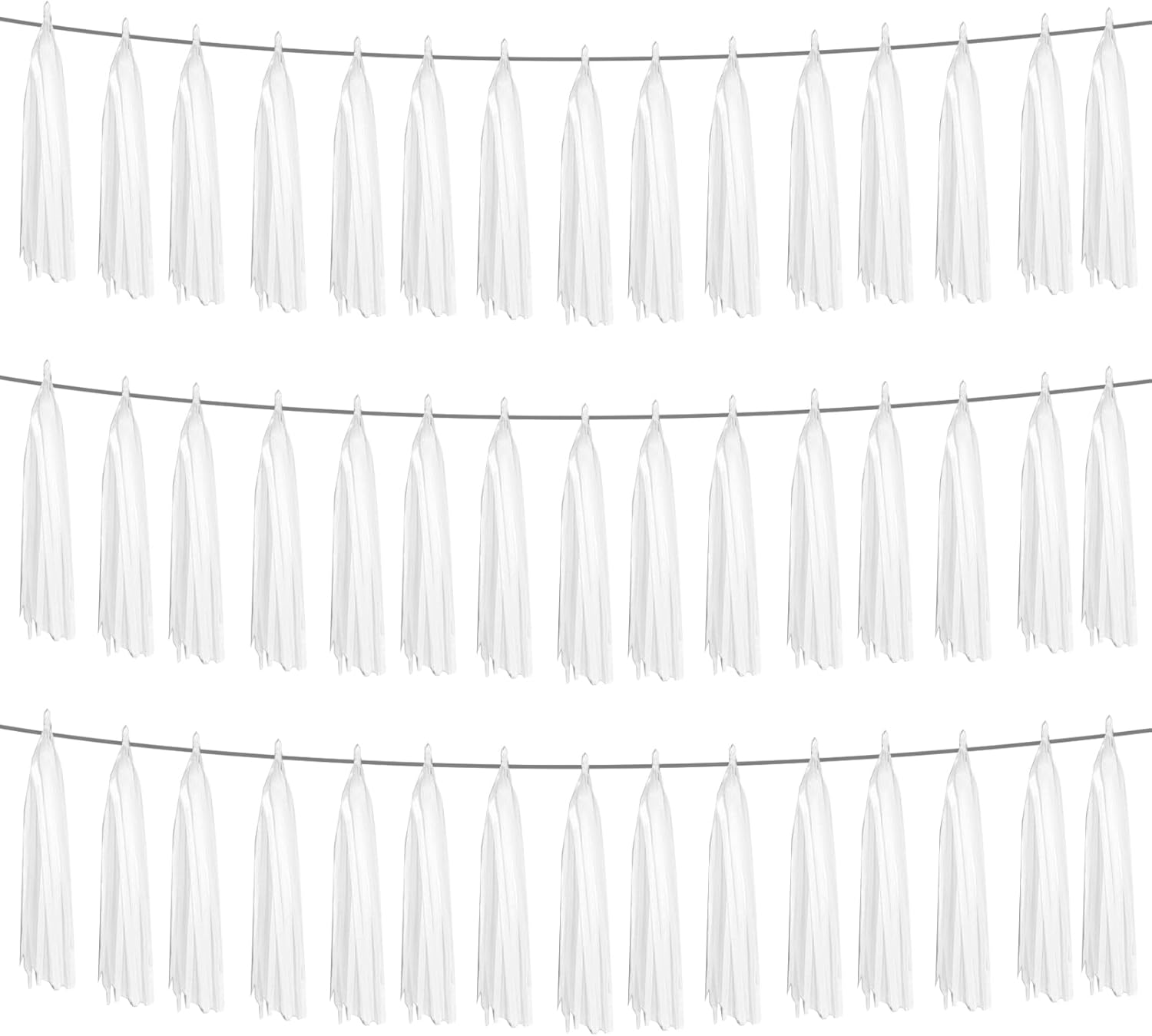 3P White Foil Fringe Metallic Tassel Streamers Banner Tassel Garland for Parade Floats, Graduation, Wedding, Birthday, Halloween, Christmas, Bridal/Baby Shower Party Decorations