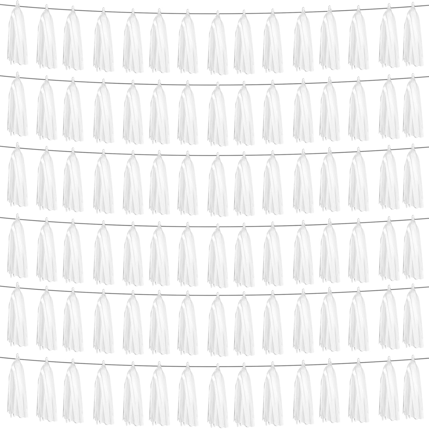 6P White Foil Fringe Metallic Tassel Streamers Banner Tassel Garland for Parade Floats, Graduation, Wedding, Birthday, Graduation, Christmas, Bridal/Baby Shower Party Decorations