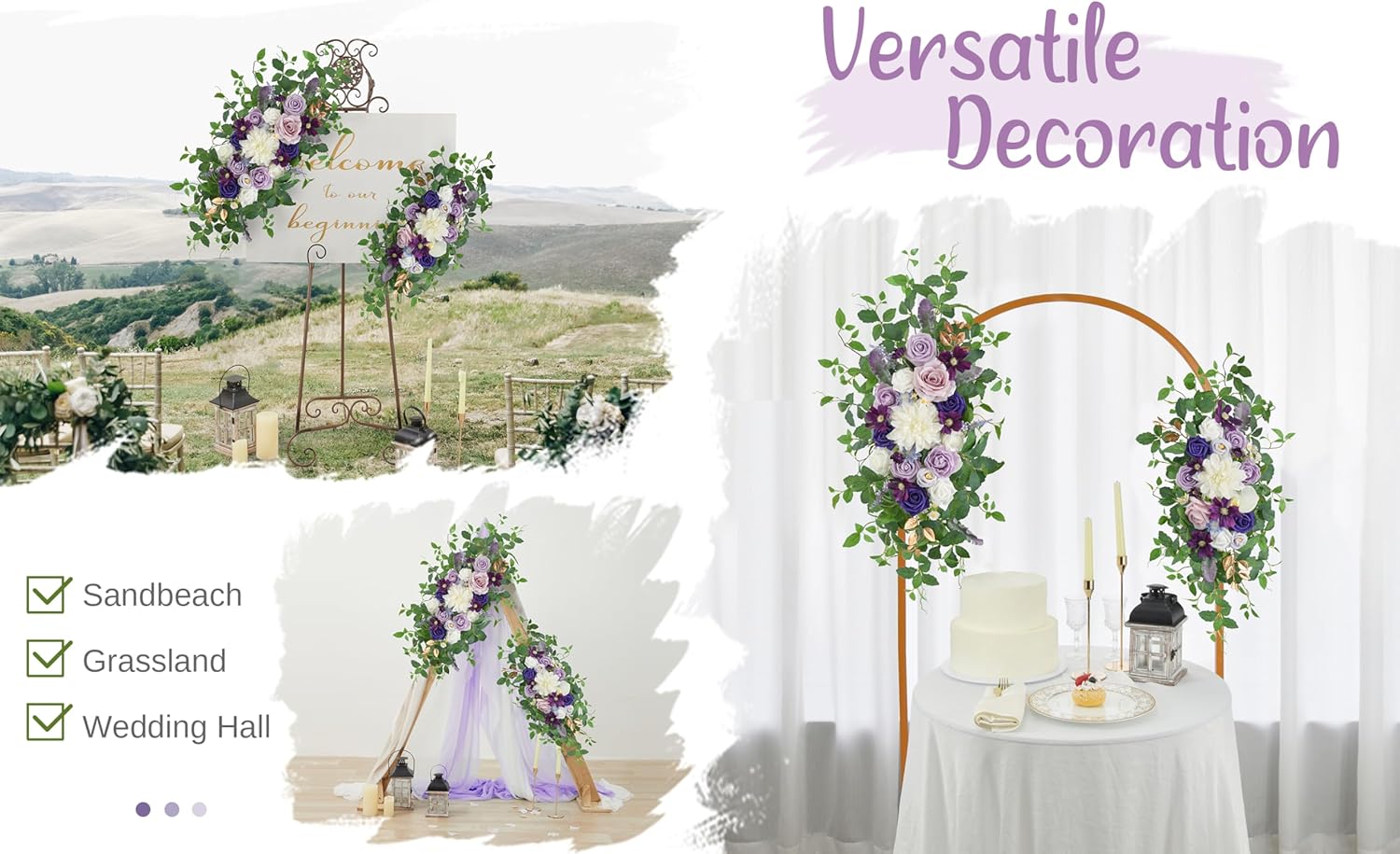 Wedding Arch Flower Kit of 2 - Artificial Flower Swag Wedding Welcome Sign Decorative Floral Swags for Wedding Reception Ceremony Signs Wedding Chair Ceremony Floral Decor (Lilac & Ivory)
