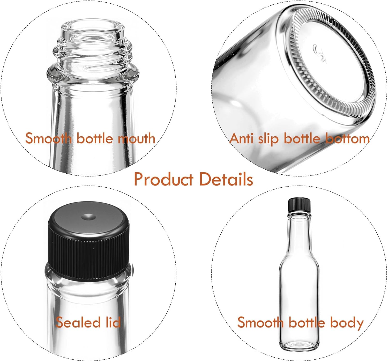 - Premium Quality: Our 24 pack 5oz mini hot sauce bottles are made of high-quality glass, ensuring durability and preserving the freshness of the hot sauce. The black lids and shrink capsules provide an airtight seal to keep the hot sauce/oil fresh