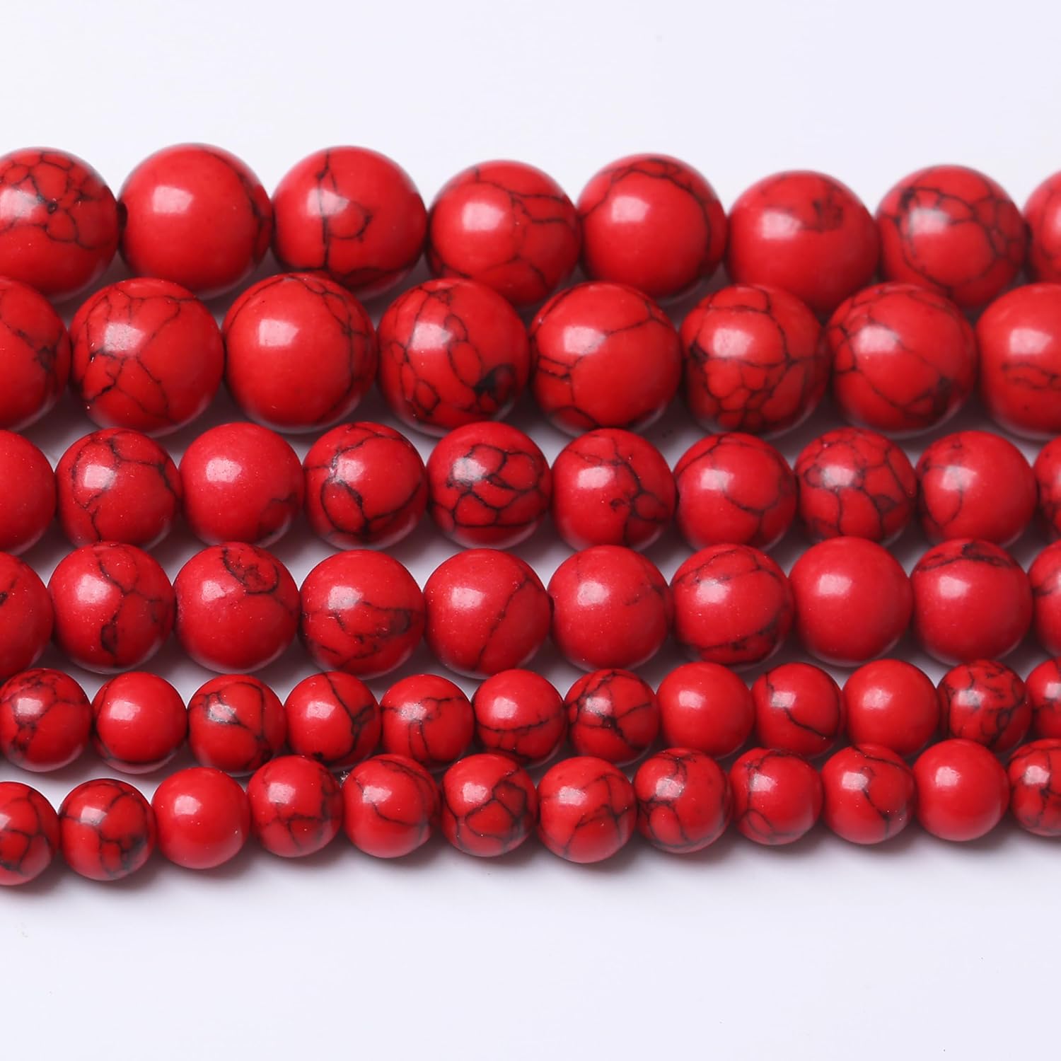 Natural Red Turquoise Stone Beads Gemstone Round Crystal Energy Jade Stone Beads for Jewelry Making DIY Bracelet Necklace Jewelry Making 1 Strand 15.5inch 90PCS 4MM