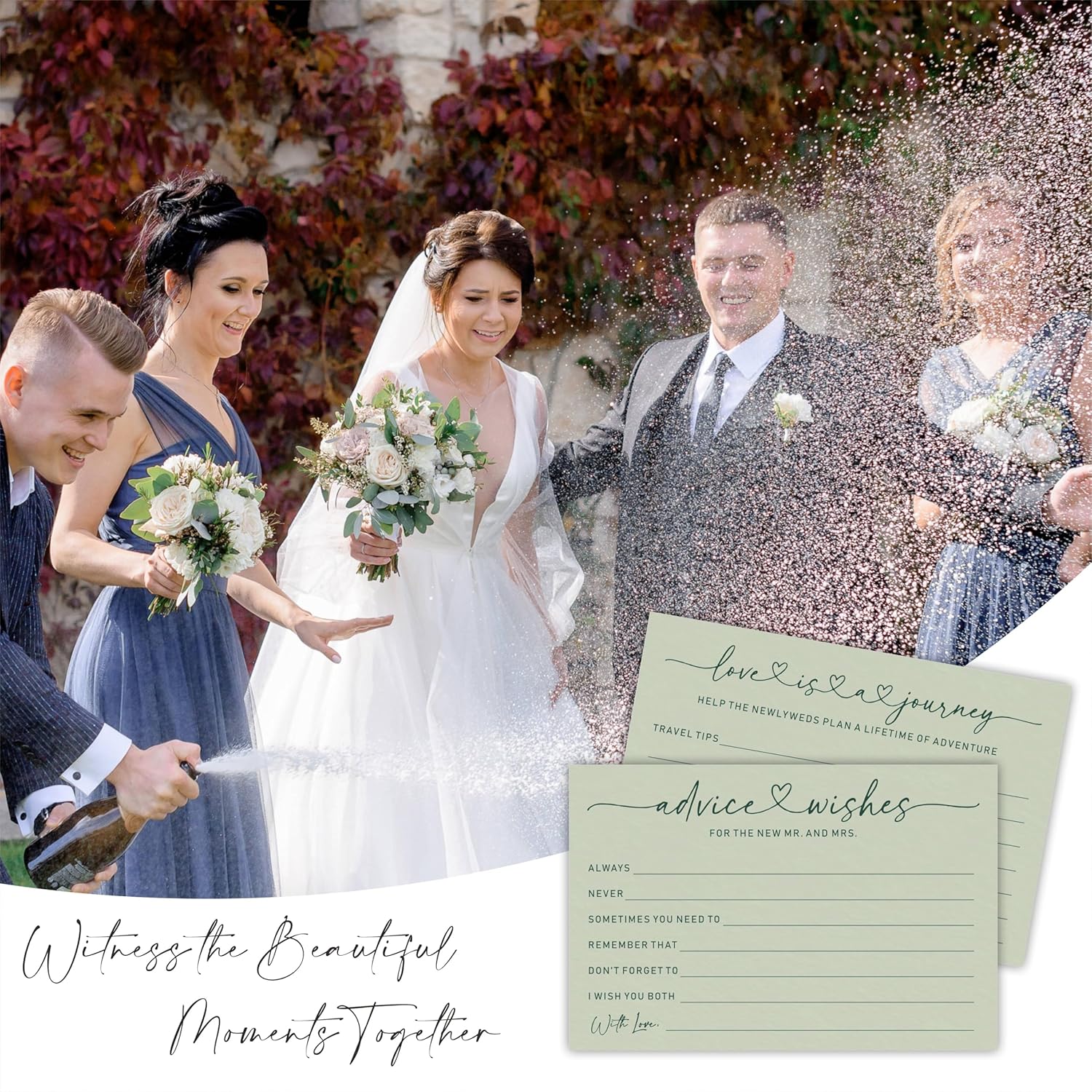 Wedding Advice Cards -Pack Of 30 Wishes For The New Mr & Mrs Wedding,Love Is A Journey Cards - Bride and Groom Newlyweds Bridal Shower Party Decoration,Games(Green) - A05