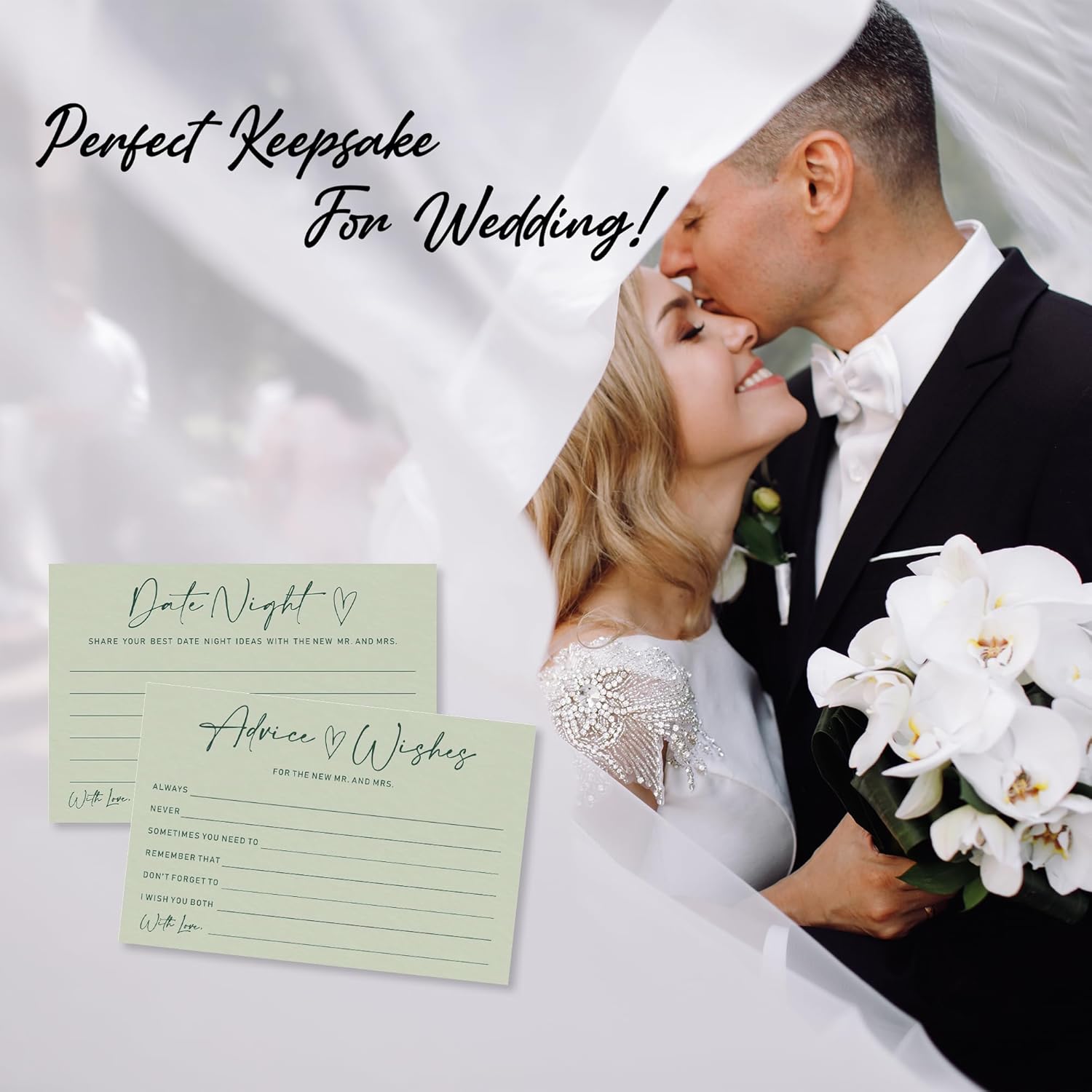 Advice & Wishes Card Set - Minimalism Moss Green - 15 Advice & Wishes Cards & 15 Date Night Cards Cards For New Couple, Newlyweds, Engagement, Wedding Party Favor & Supplies - B05