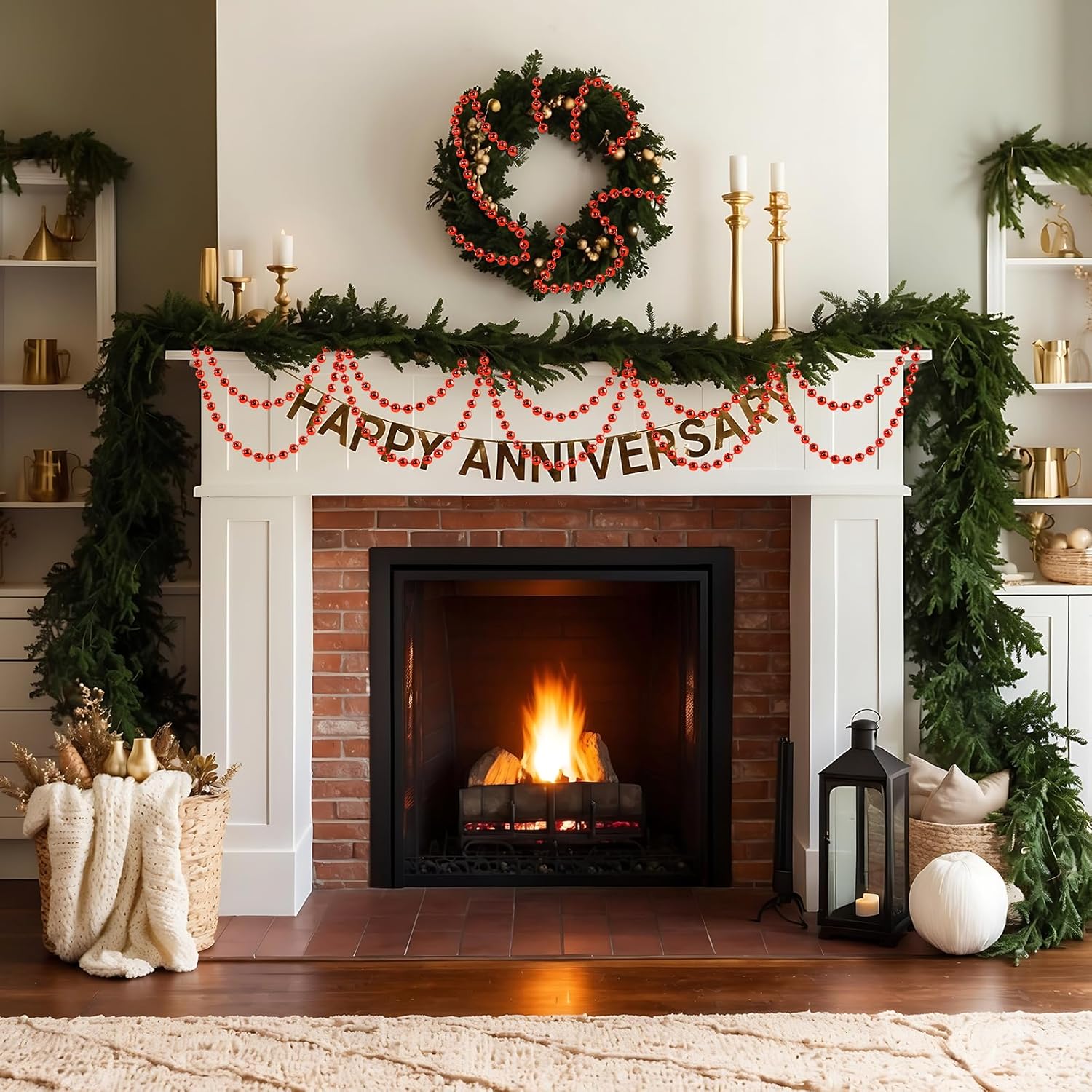 Red 8MM Faux Pearl Garland, 33 Feet Roll Strand Wedding Party Decoration, Christmas Tree Decorations