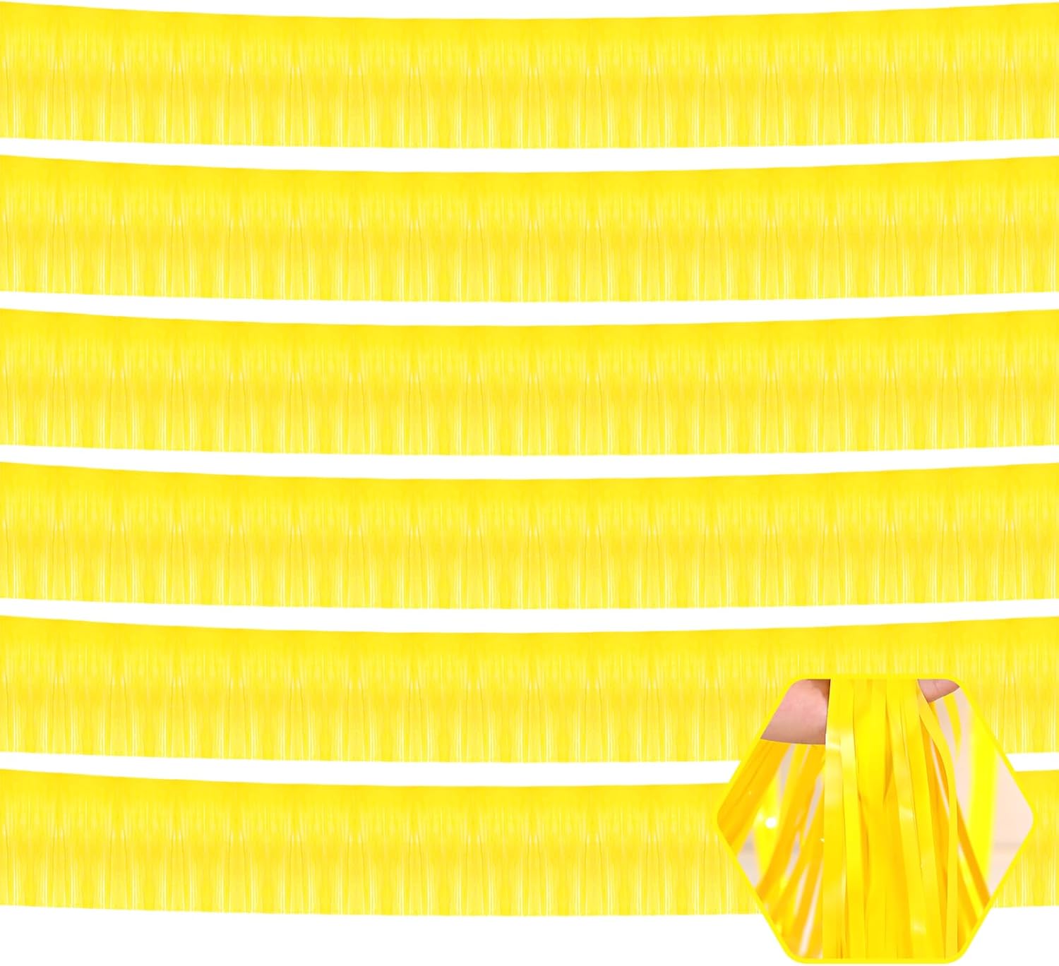 6 Pack 10 Feet Yellow Foil Fringe Garland Metallic Tinsel Streamers Banner Wall Hanging Curtain Backdrop for Parade Floats, Birthday, Graduate, Mother's Day, Wedding Party Decoration