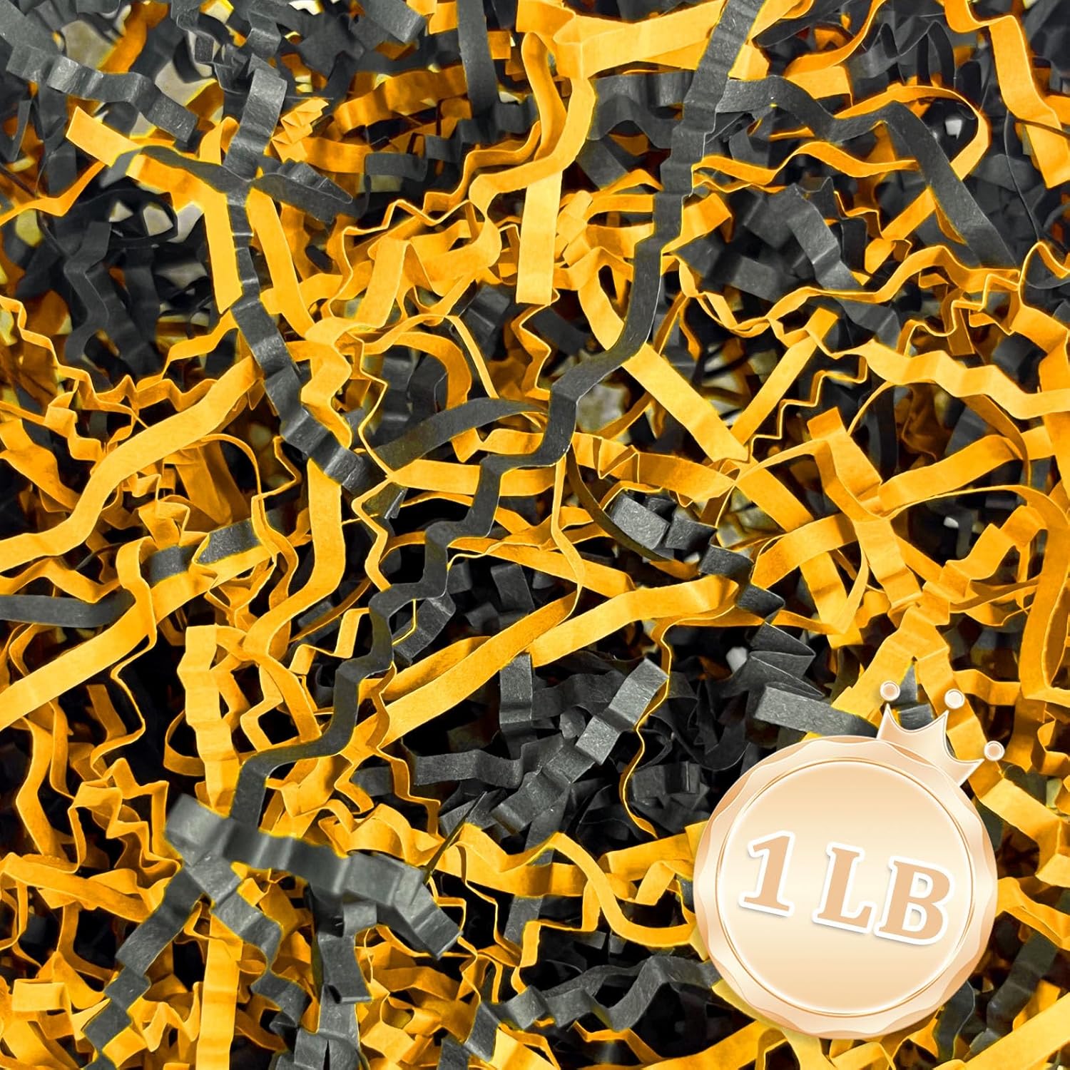 Zankubom 1 LB Crinkle Cut Paper Shred Filler Great for Gift Wrapping, Basket Fillers, Birthday, Gift Wrapping, Anniversary, Halloween Christmas Party Decor Filling Supplies Black Gold