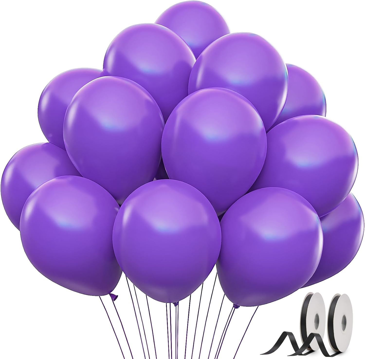 - 12 Inch Purple Balloons: Includes 100 Purple balloons, with 2 rolls of balloon ribbons. These Purple Halloween balloons weigh 2.8 grams each, enough quantity can meet your festival or party decoration needs. We use Grade A materials and are confident in the quality of our Halloween balloon decorations.