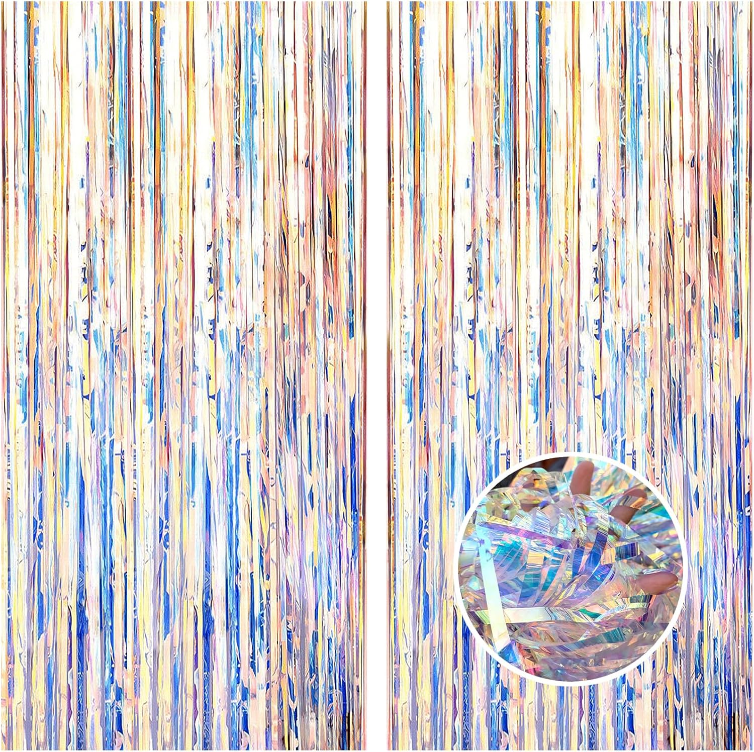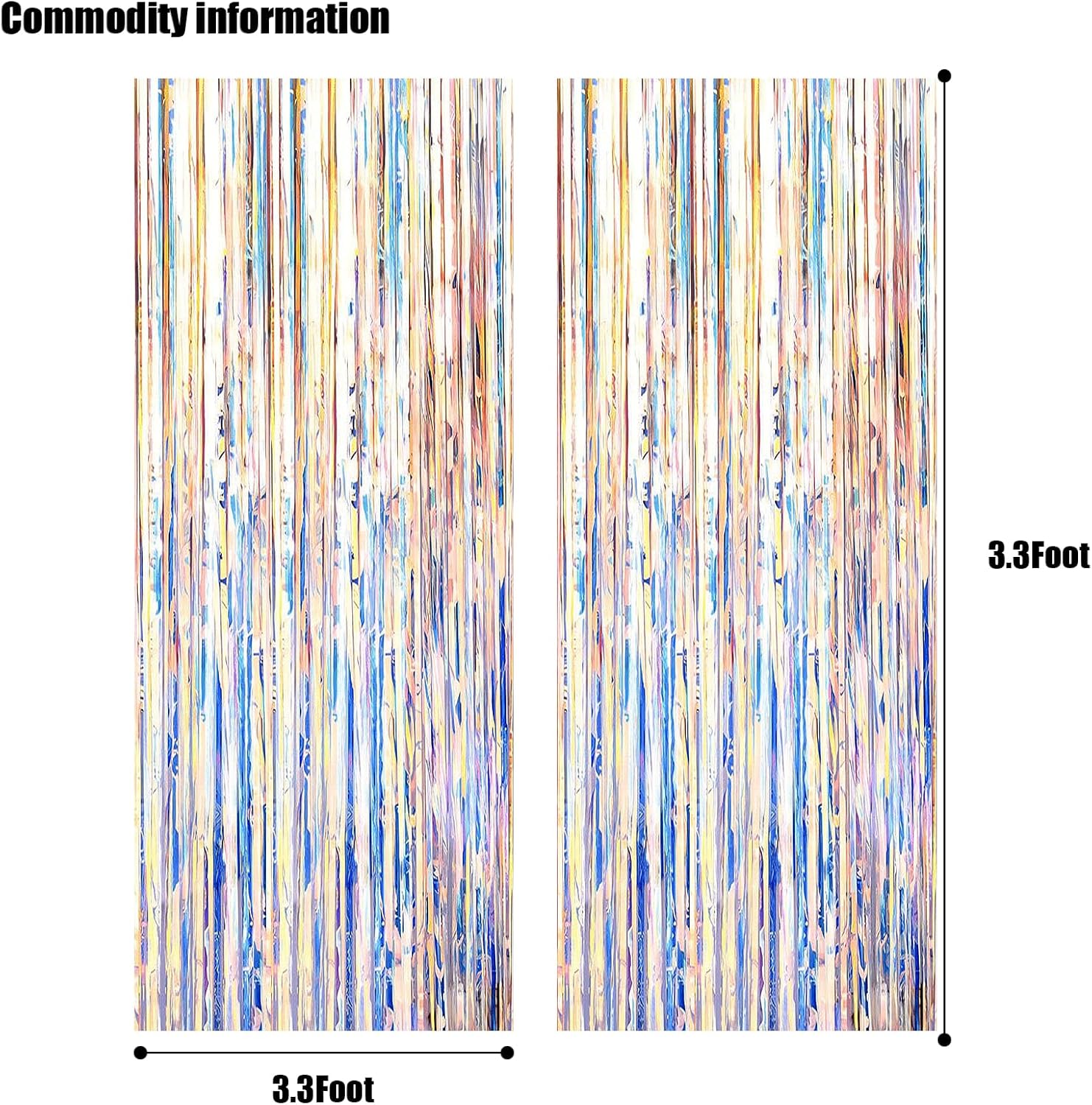 - PACKAGE INCLUDED : 2 pack of Iridescent foil fringe curtains, the size of each tinsel curtain is 3.2 ft x 6.5 ft, enough length for hanging on a door or covering a wall fully, suitable for any parties.