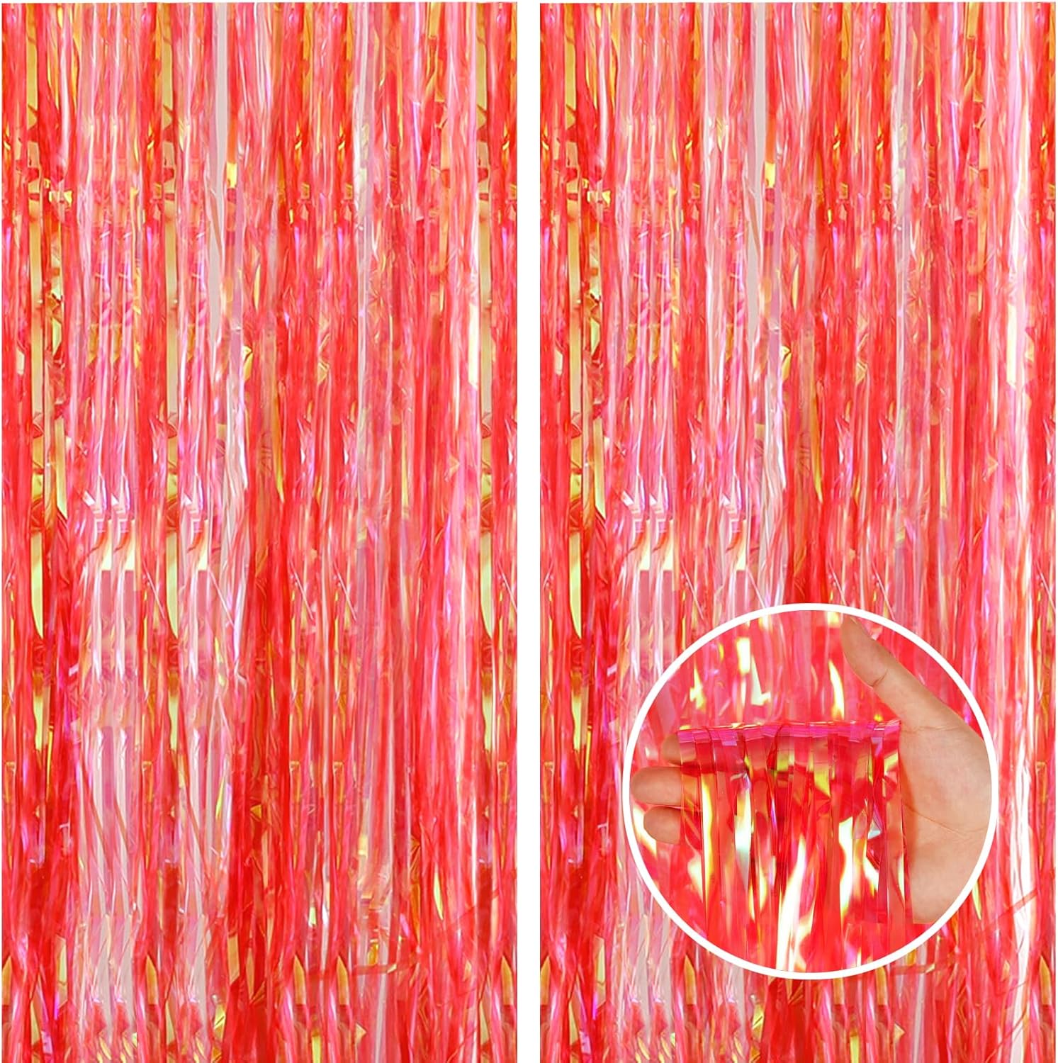 - PREMIUM MATERIAL- This clear red tinsel backdrop is made of high-quality shiny tinsel, non-toxic, odorless, and non-fading, safe for families with children and pets. Just transform your home into a shining streamers happy birthday decorations, and enjoy the party.