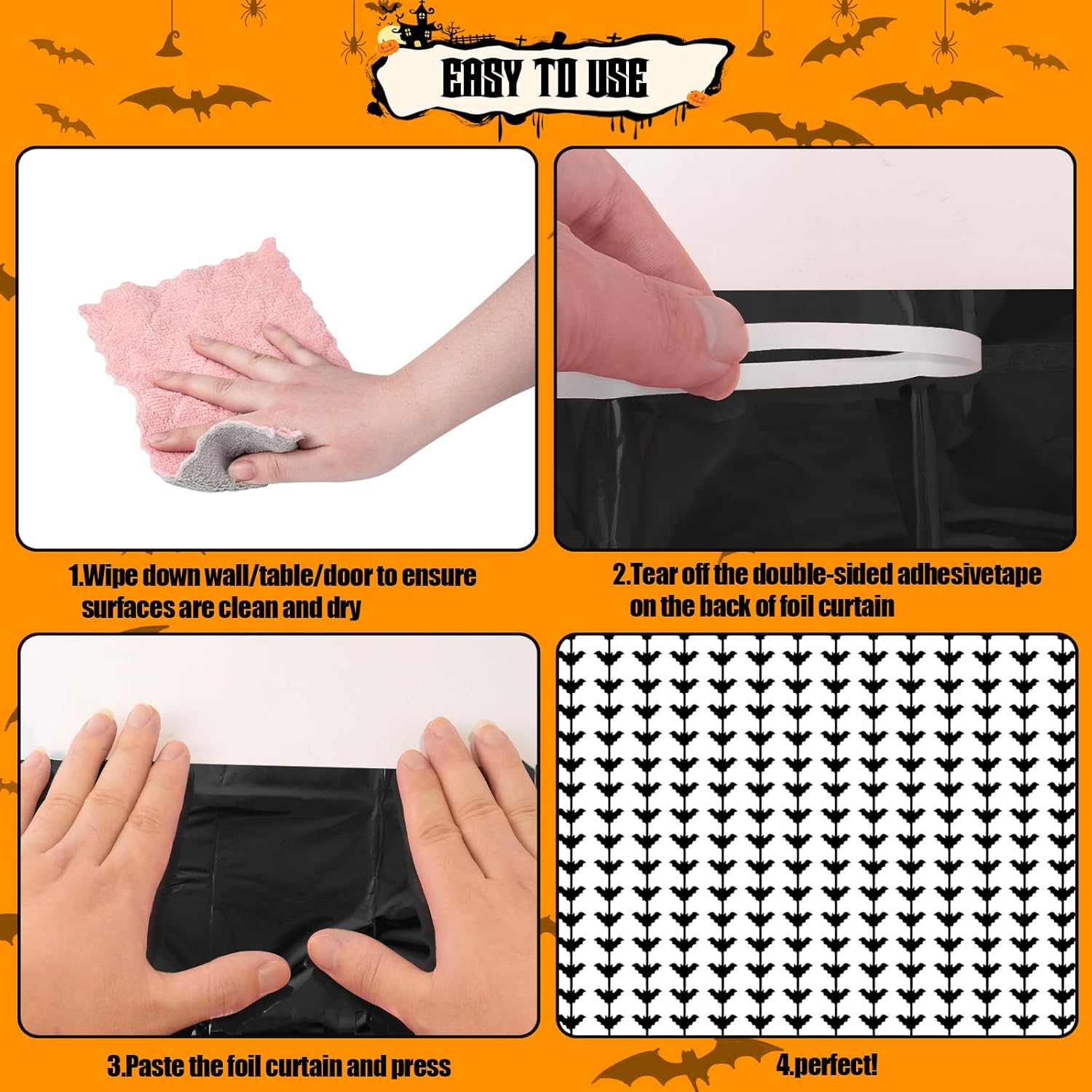 - PACKAGE INCLUDED : 2 pack of black bat foil fringe curtains, the size of each tinsel curtain is 3.2 ft x 6.5 ft, enough length for hanging on a door or covering a wall fully, suitable for any parties.