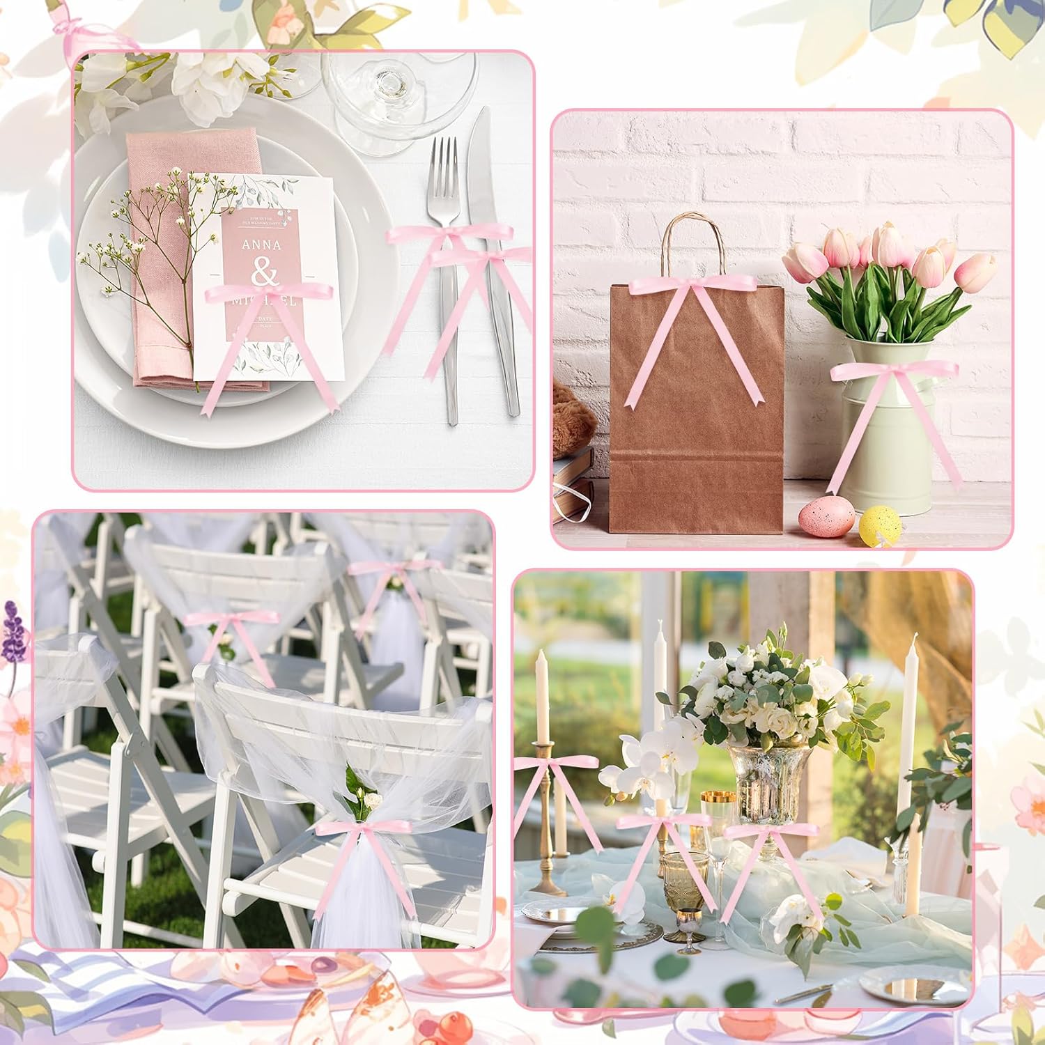 - User Friendly: these pink satin bows for crafts are handmade and pre tied, including a detachable wire tie at the back that simplifies their use and storage; They are convenient and practical, allowing you to easily attach to places or items you want to decorate, such as gift wrap, cookie bags, rattan bags, DIY crafts; These bows can save you time and provide you with decorative inspiration when making crafty bows