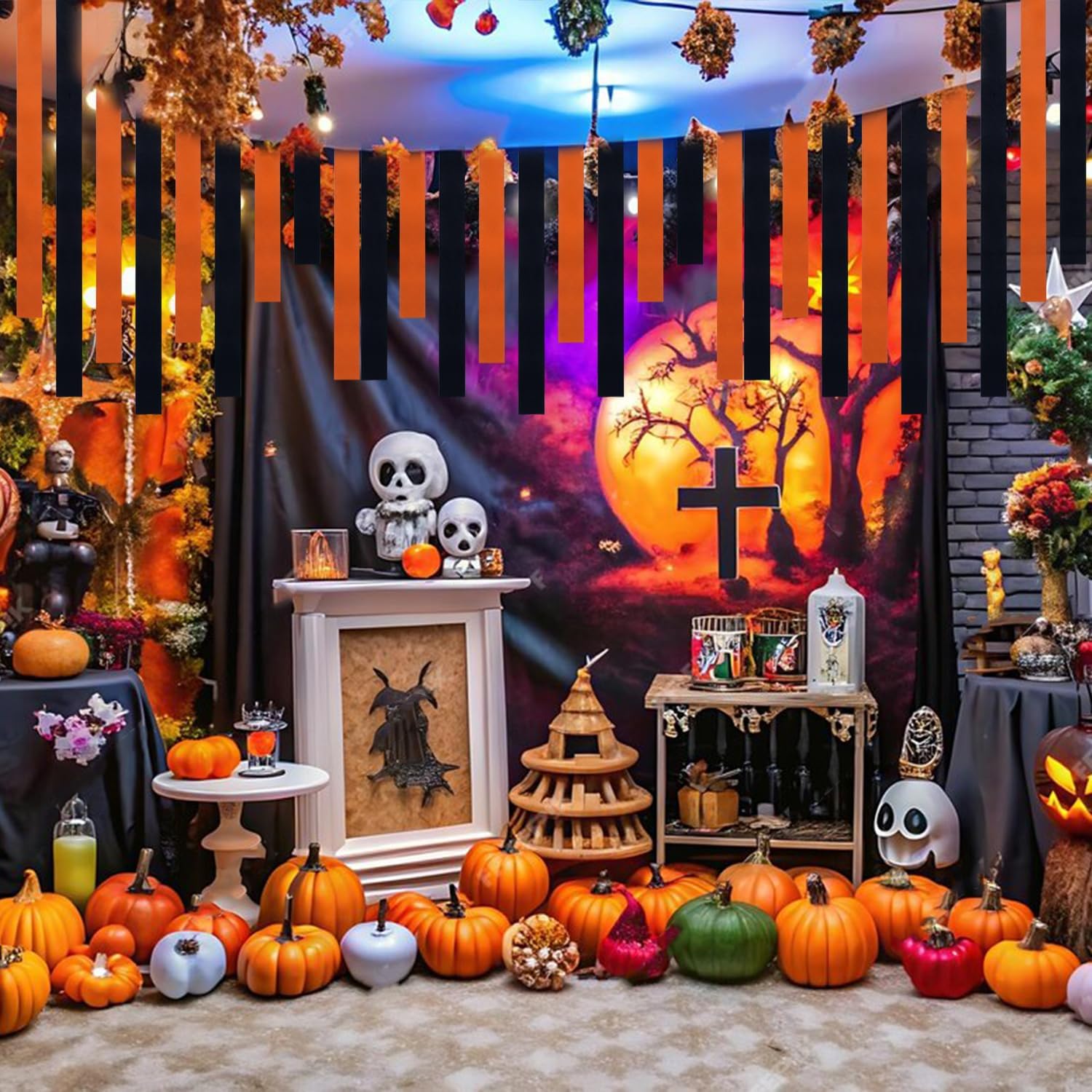 - 【Multiple Applications】The orange and black Paper Streamers are a wonderful addition to Halloween night, Easter, New Year Eve, graduation, horror party, yard outdoor indoor party, wedding, birthday, baby shower, bridal shower, tea parties, garden party, masquerade, role play and other party decorations. Simply wrap them around the table, or hanging over the ceiling, door, window, fireplace, garden fences or just twisting together, easily adding holiday atmosphere to your theme party