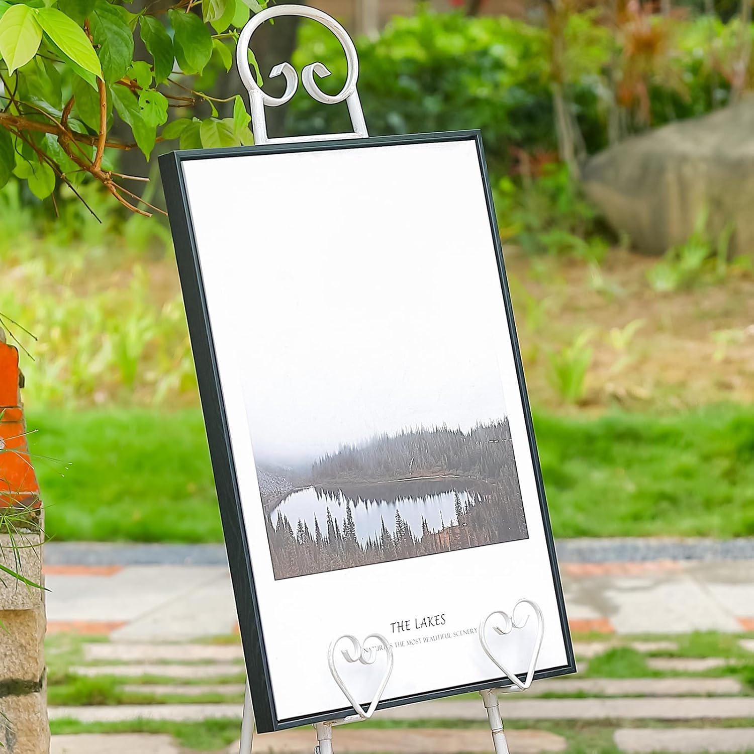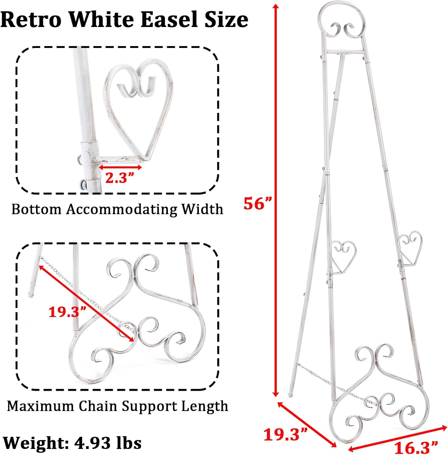 - Elegant Design and Modern Functionality: The heavy duty adjustable large easel's heart pattern design adds modern and stylish glamour to both indoor and outdoor spaces. Its unique heart shape and durable rust-resistant retro white powder coat finish make it perfect for decorative and functional displays in the home, gallery or event.