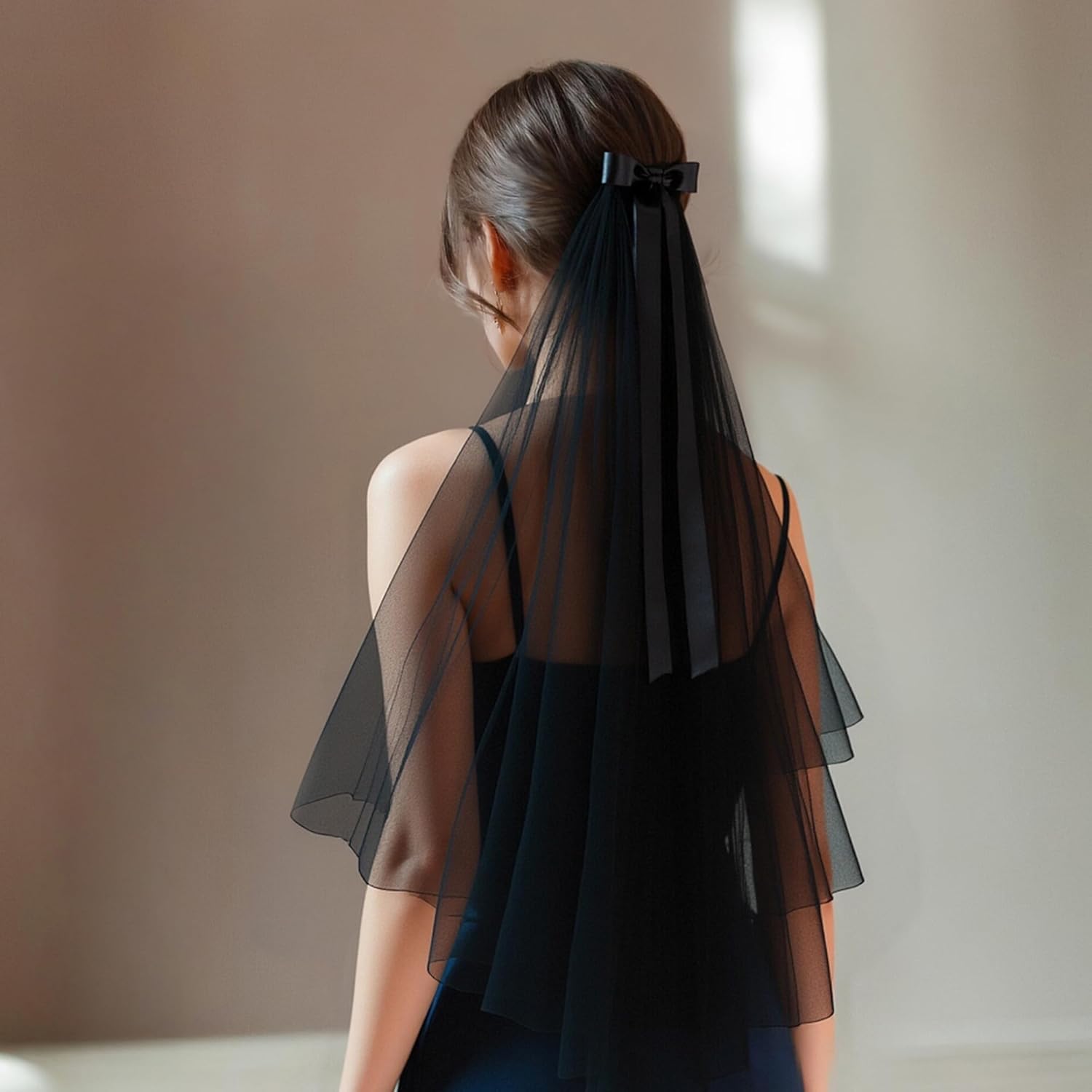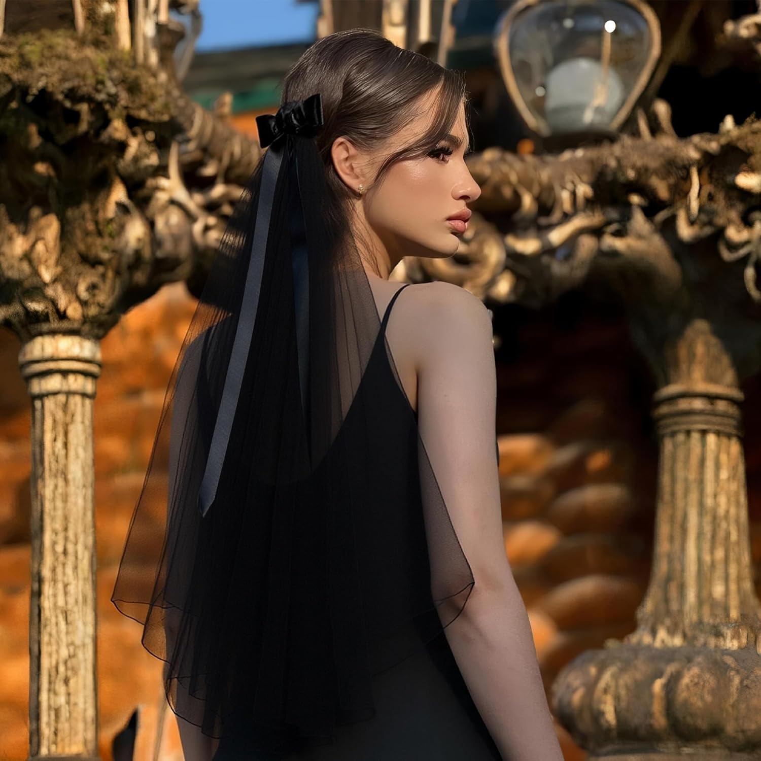Ayliss Women Mesh Veils Black Bridal Birdcage Short Wedding Face Veil with Clip Tulle Gothic Bride Halloween Costume