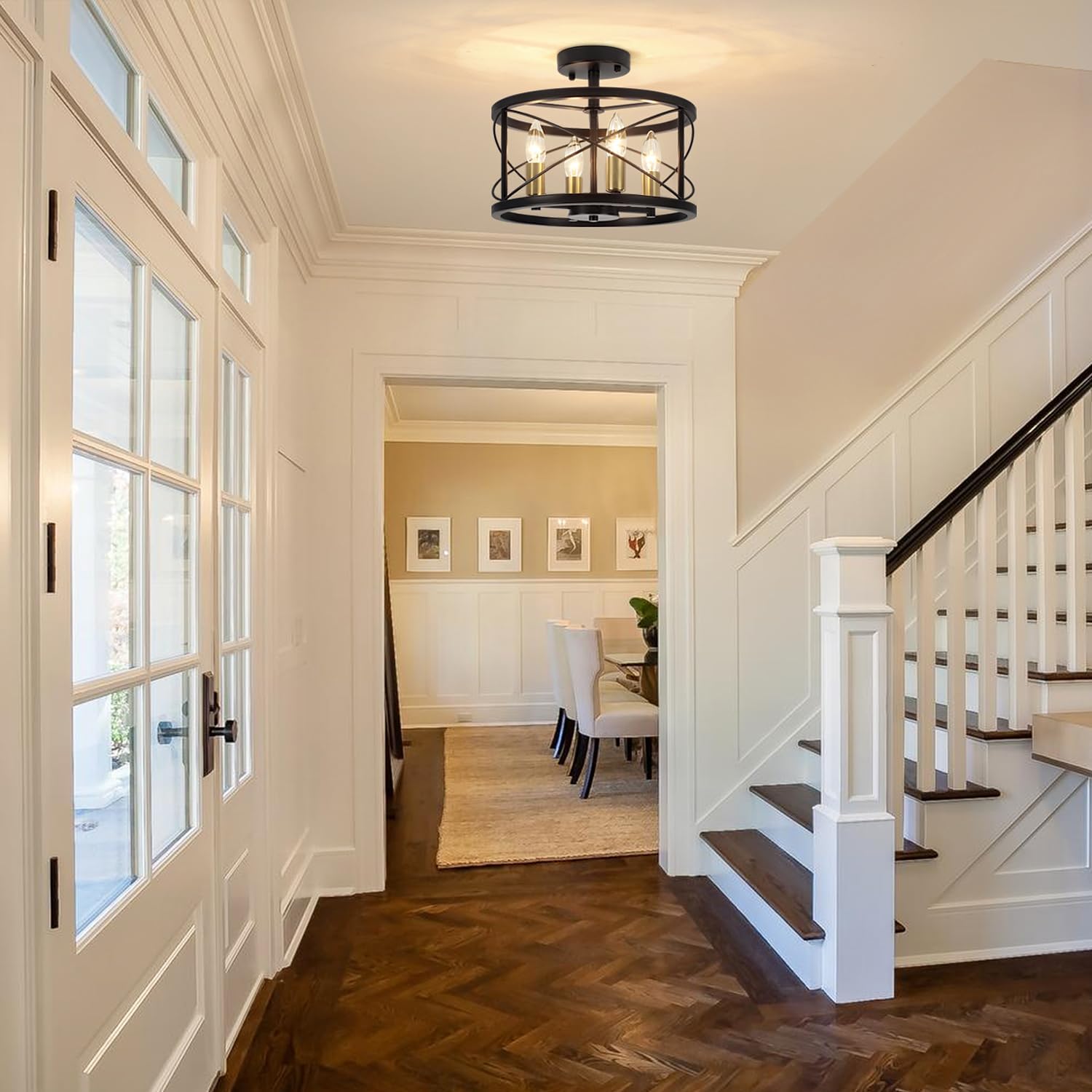 - E12 Base & Bulb Compatibility: Designed for versatile illumination, this rustic hallway light fixtures ceiling mount accommodates four E12 base bulbs (40W max). Compatible with LED/CFL/Halogen options, it provides flexible lighting solutions for transitional areas like foyer lighting fixtures and laundry room light fixtures ceiling