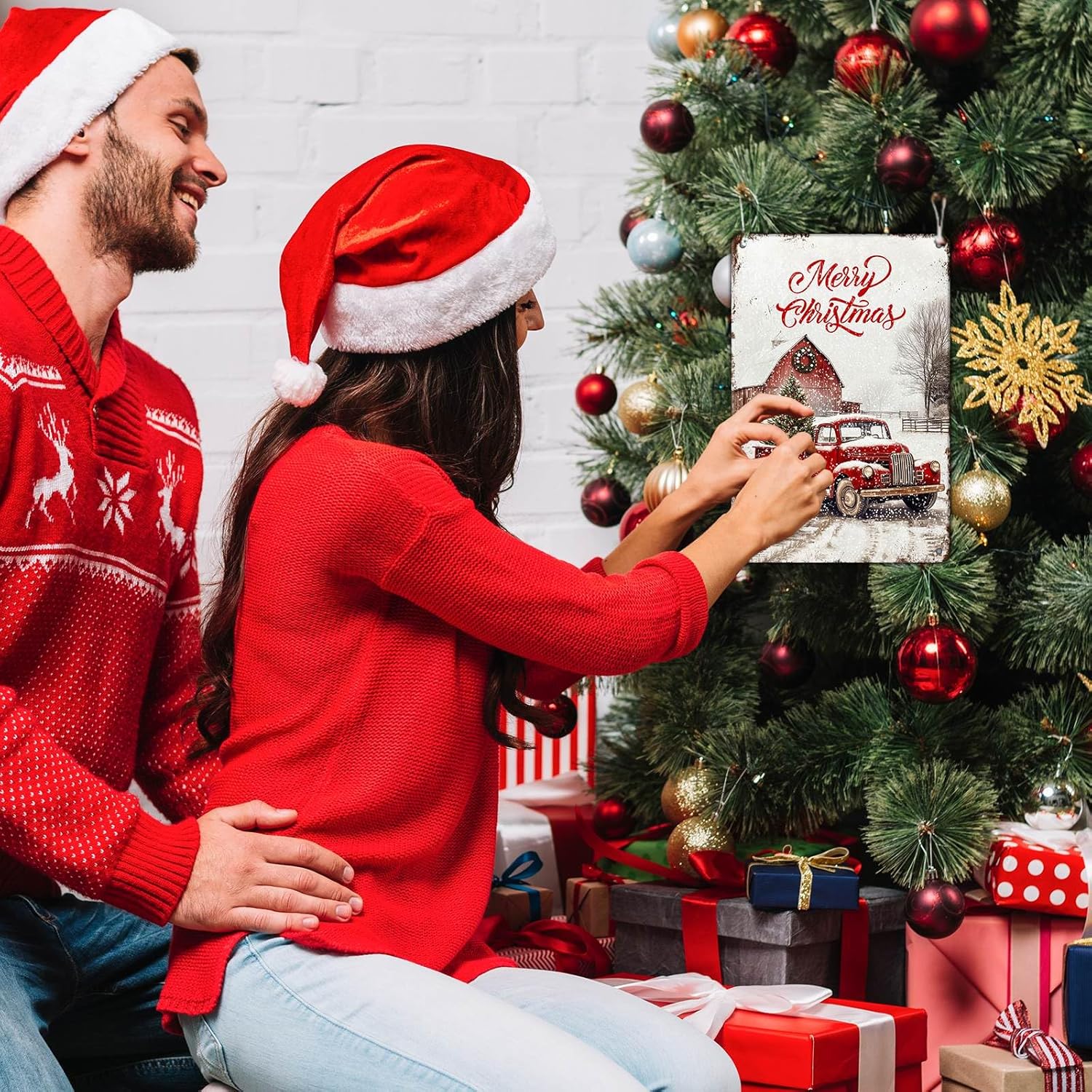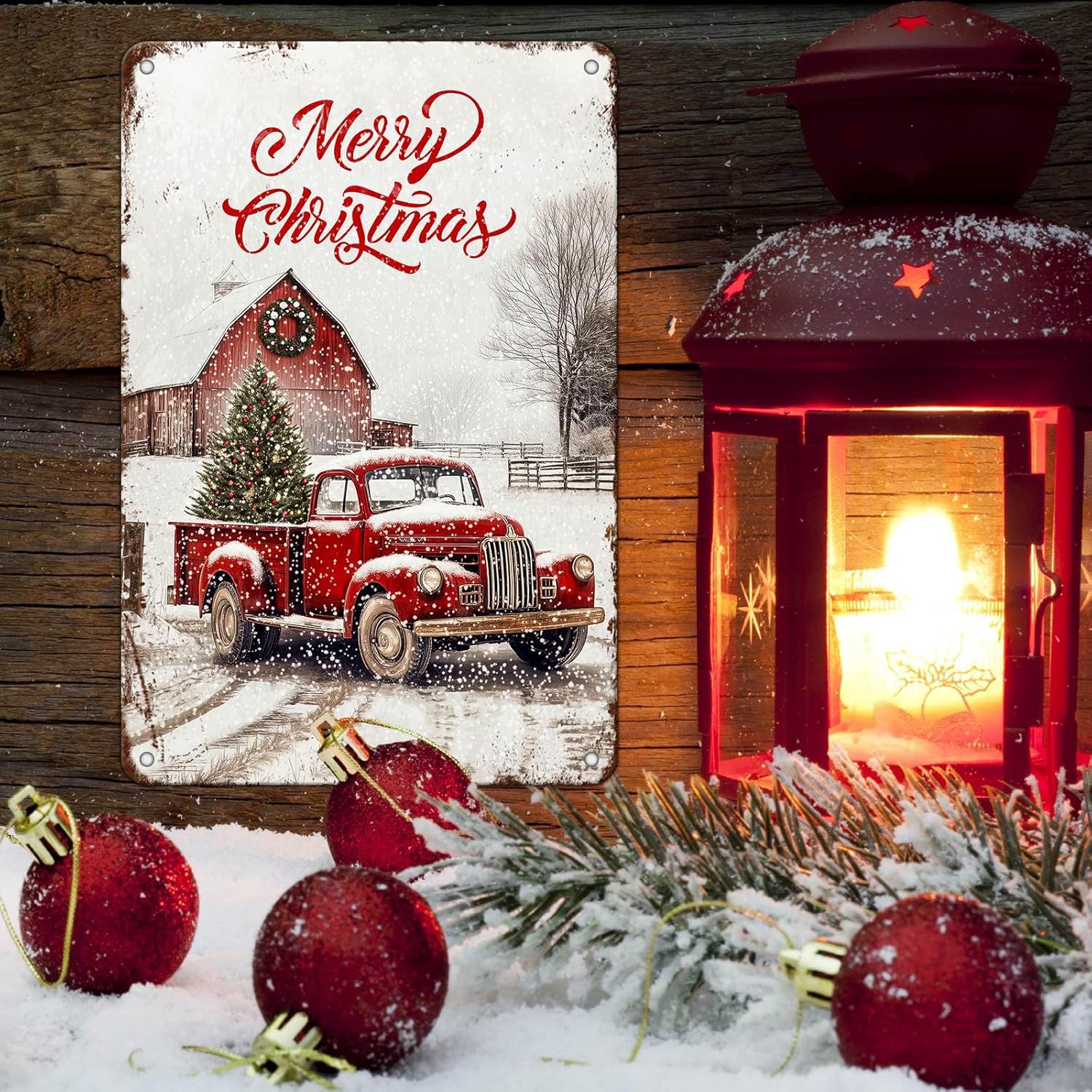 - Christmas Truck Metal Sign Easy To Install : The Vintage Christmas Tin Sign has Rolled Edges and Rounded Corners to Avoid Injury, Plus It Comes With 4 Pre-Drilled Holes, Requiring No Adhesive or Special Equipment. This ​​Red Truck Metal Sign is Designed to Withstand Outdoor and Indoor Conditions, So You Can Display It Anywhere You Like.